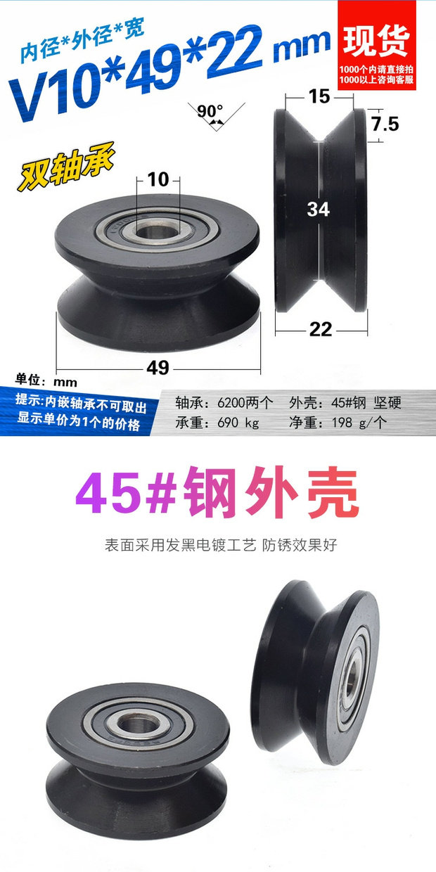 | Цвет: | V 10*49*22 мм черно -стальное колесо |