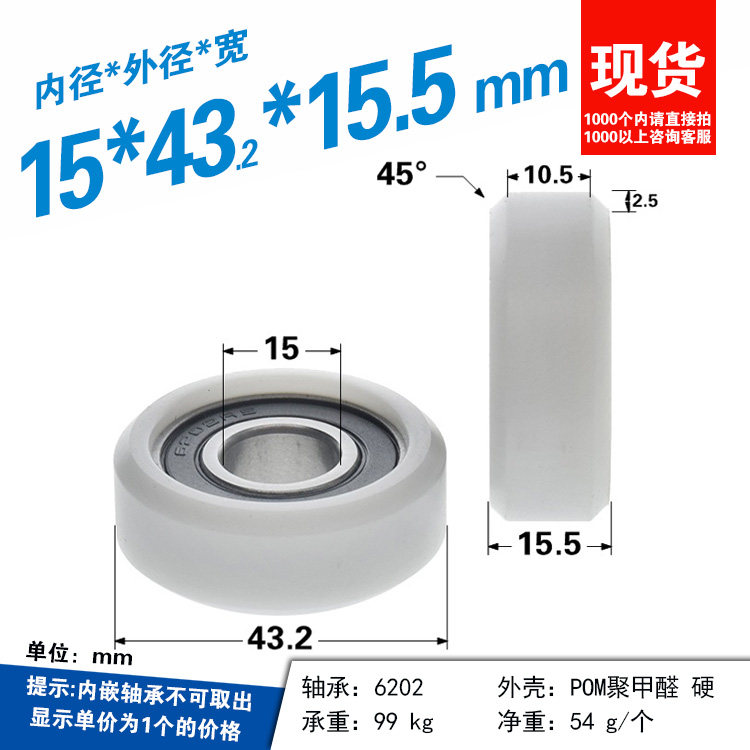 6202 Пластиковые пластиковые пластиковые пластиковые шкивы Пом Полидегидная смола Нейлоновое колесо Плоское заворот 15*43