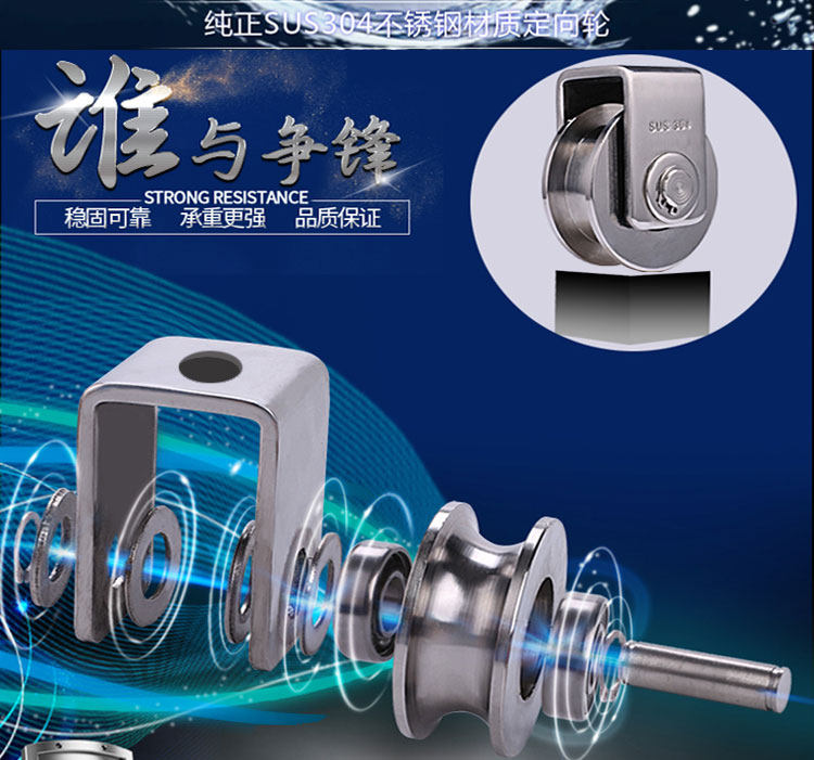 Нержавеющая сталь 304, УФ-тип, пазовое колесо, гусеничное колесо, подшипник тяжелого колеса, проволочный шкив, толкатель и тяга, подъем раздвижной двери, одиночный ролик