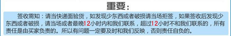 Поскольку продукт, проданный в этом магазине, относительно большой (за исключением образцов, чтобы взять курьера)улыбка) Я найду вам дешевую логистику для доставки (Помнить) Вы получили (товары) Он должен быть проверен в логистике (Есть ли ущерб или потеря предметов)если(Потеряно или повреждено) Не подписывайте счет, пожалуйста, своевременно и (улыбка) Контакт или информировать  мы свяжемся с логистикой, чтобы ответить на удовлетворительный ответ