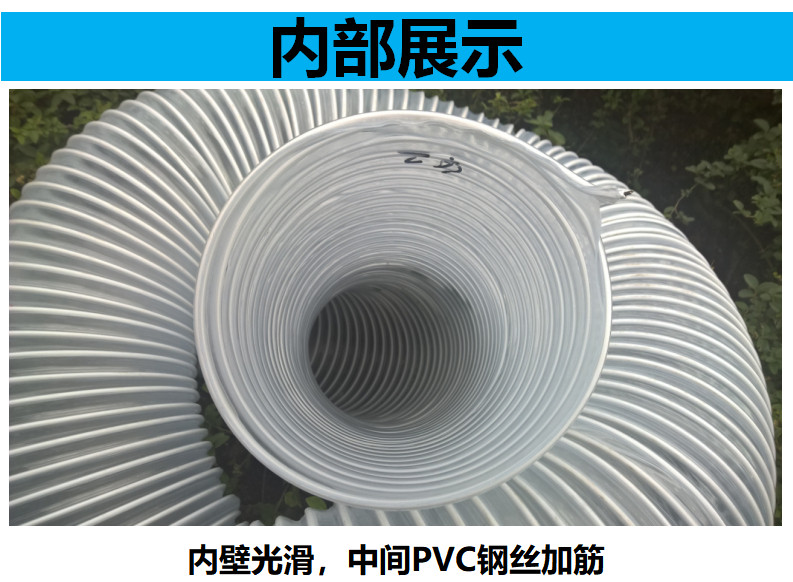 Преимущество продукта: ПВХ прозрачная стальная проволочная воздушная труба принимает новую ПВХ пленку и пластик, инкрустированную стальной филаментой и интегрированной костью. с устойчивостью к устойчивости железного перхоти из дерева.