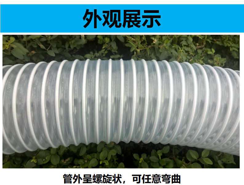 Прозрачная стальная проволока ПВХ Вентиляционная труба Промышленная пыль вакуумная протока выхлопная труба.