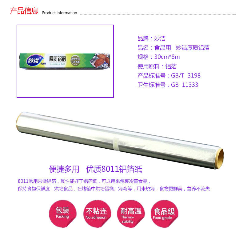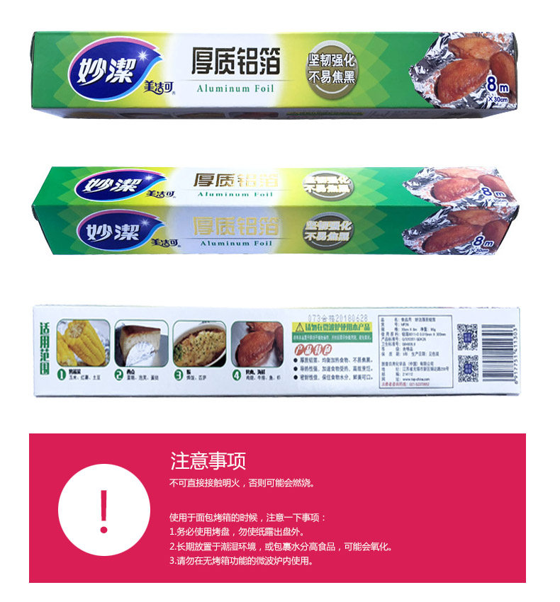 妙洁 MF26 Meijie Толстая алюминиевая фольга барбекю и приготовление теста оловянная фольга 30 см*8 м 3 рулоны 24 м бесплатная доставка