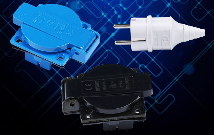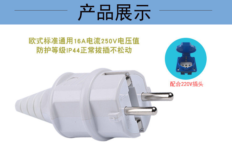[汽油发电机柴油机配件欧式两脚2/3KW 5千瓦6.5kw插头插座250V防水]