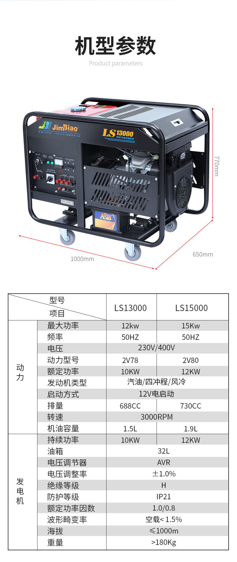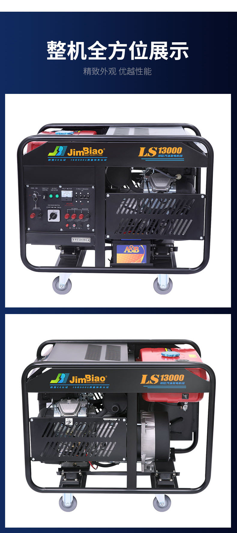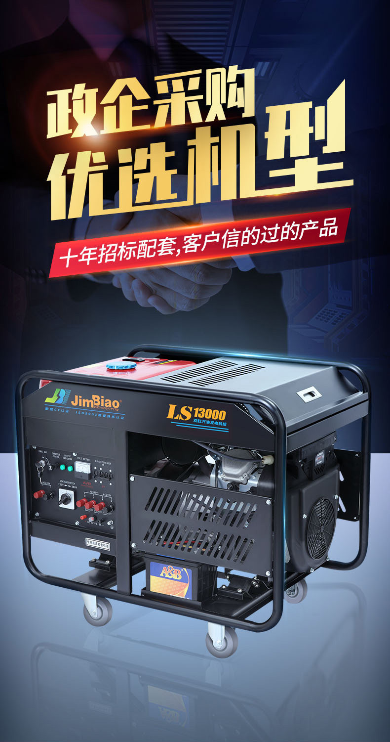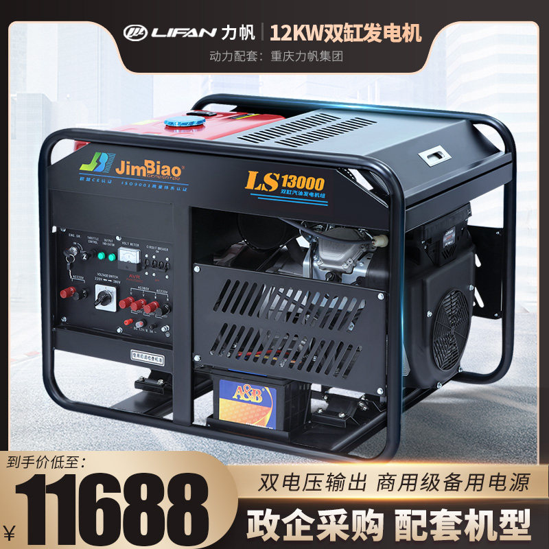 Jimbiao 10 кВт/12 кВт/15 кВт двойной генератор бензина 220 В двойной двигатель двойной двигатель 380 В