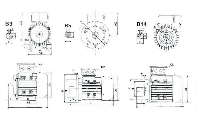 YS7124 Вертикальный трехфазный асинхронный мотор/алюминиевая оболочка миниатюрного двигателя 370W380V1400 об/мин/минутная оси 14