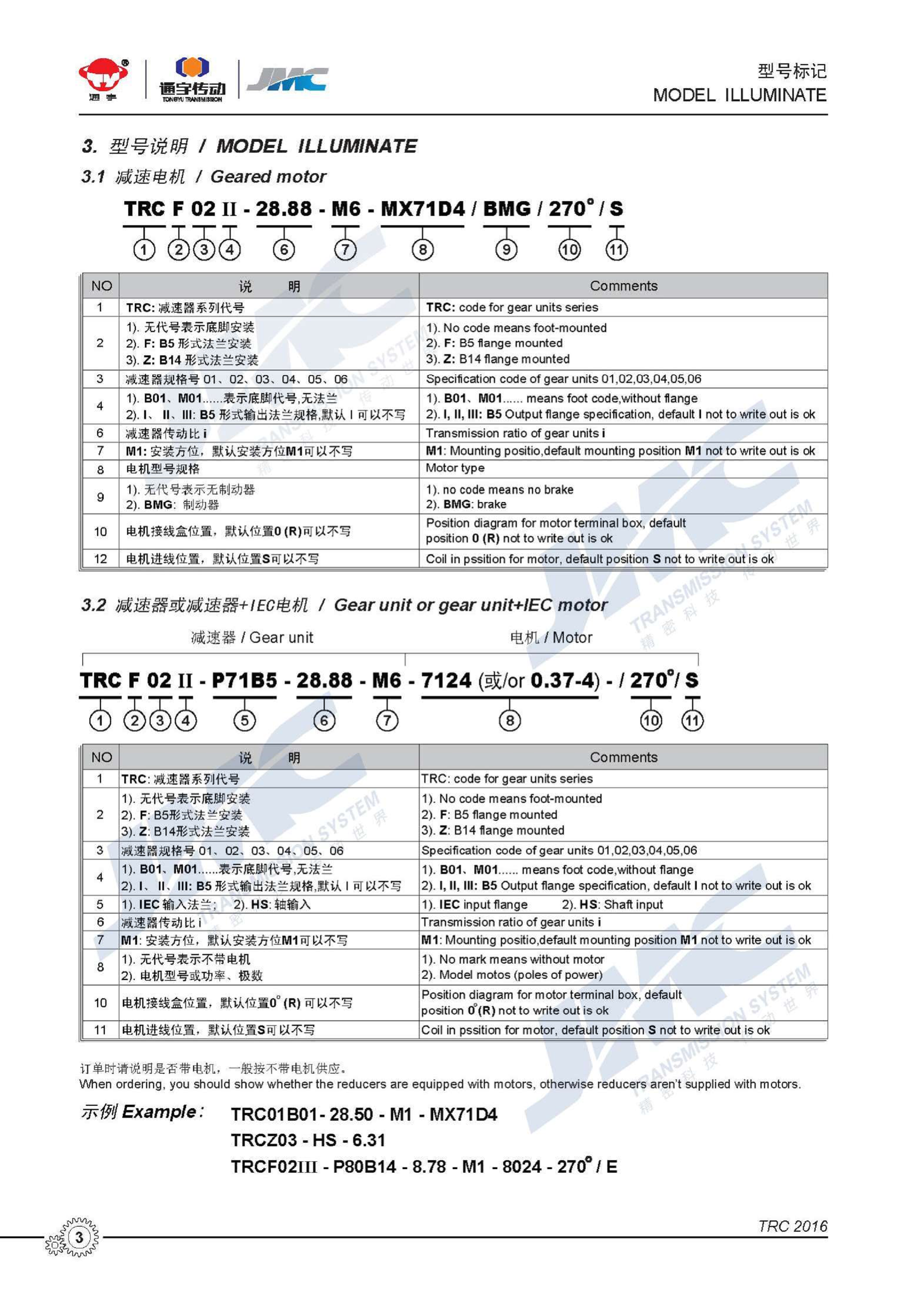 TRC01TRC02TRC03 TONGYU JMC Диагональный редуктор Редактор пищевых продуктов Редактор