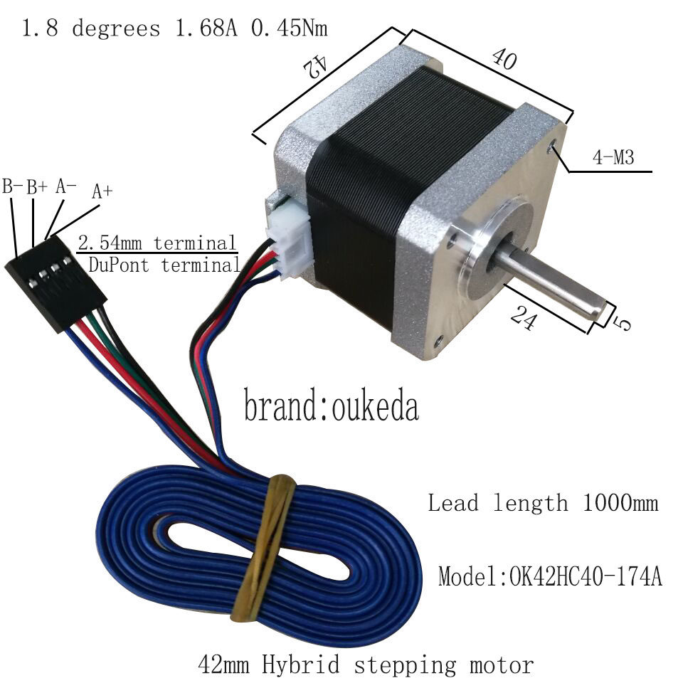 42 -Штальный двигатель 42Bygh40 1,8 градуса NEMA 17 Штатный двигатель 3D Печатный двигатель 0,45 нм