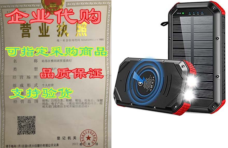 Solar Power Bank, 30000mah Qi Wireless USB C Portable Cha