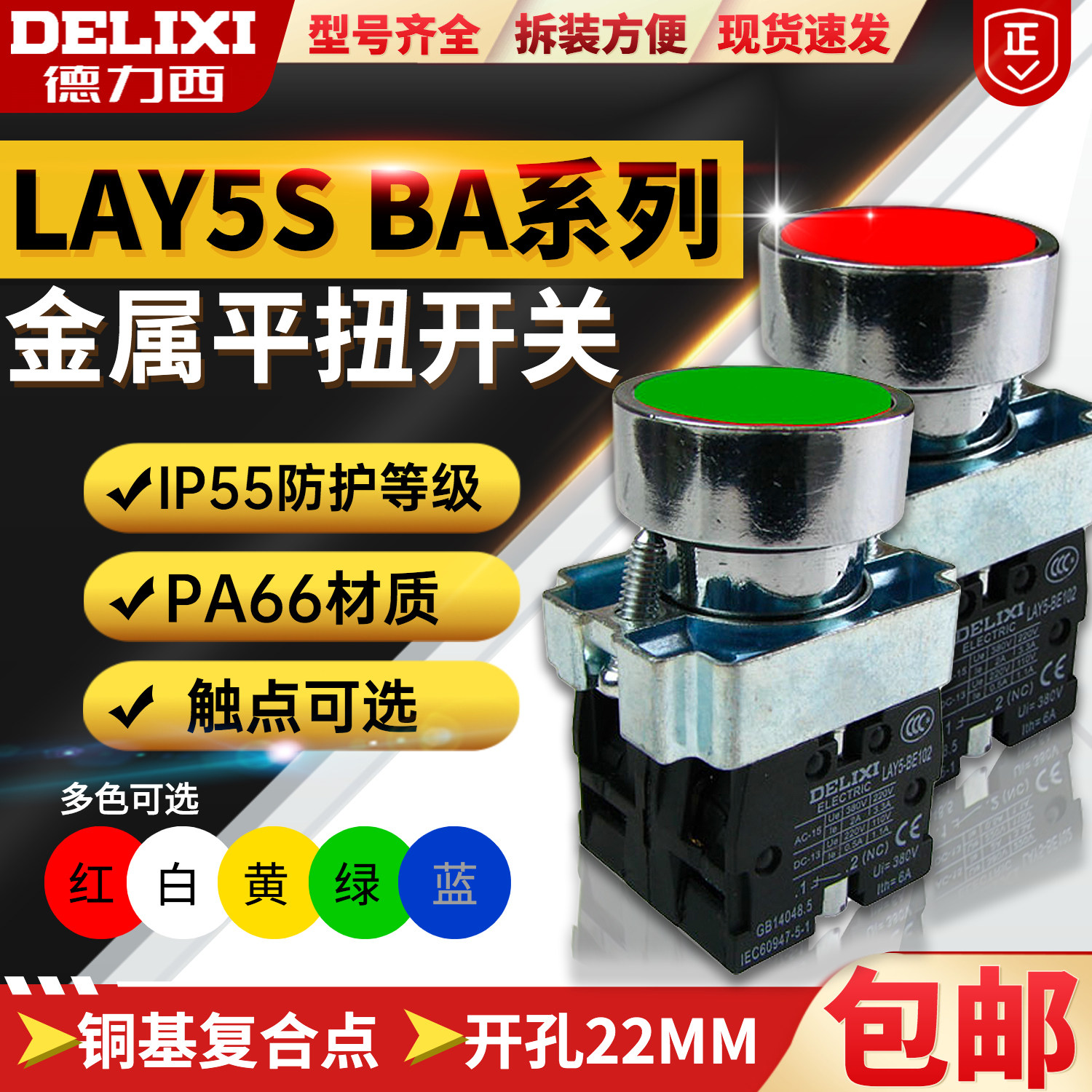 Переключатель кнопки Delicai Lay5S-BA33/BA35/BA45/BA55 Металлическая плоская кнопка с плоской головкой Двойной штрих