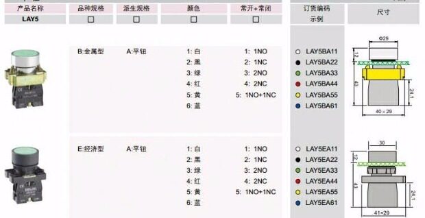 | Цвет: | Lay5s-ba41 red 1no (однажды открыт), Lay5s-ba42 красный 1nc (только закрыто), Lay5s-ba31 green 1no (однажды открыт), Lay5s-ba32 зеленый 1nc (только закрыто), Lay5s-ba43 Red 2no (два нормы), Lay5s-ba33 зеленый 2no (две нормы открытого), Lay5s-ba45 Red 1no+1nc (один открытый и один близкий), Lay5s-ba35 green 1no+1nc (один открытый и близкий), Lay5s-ba55 желтый 1no+1nc (один открытый и близкий), Lay5s-ba15 белый 1no+nc (один открытый и близкий), Lay5s-ba52 желтый 1nc (только закрыто), Lay5s-ba51 желтый 1no (когда-то обычно открывается), Lay5s-ba11 White 1no (1 обычно открыт), Lay5S-BA13 White 2NO (два нормального отверстия), Lay5s-ba61 Blue 1no (стандартная плоская кнопка), Lay5s-ba25 Black 1no+1nc (один открытый и близкий), Lay5s-ba44 2nc (два обычно закрытые), Lay5s-ba21 черный 1no (однажды открытый), Lay5S-Ba Green Bottom Parallel Bar 1no (стандартная плоская кнопка), Lay5S-ZS AC/DC 24V Green, Lay5S-ZS AC/DC 24V красный, LAY5s-BA 65 синий 1НО+1НЗ (стандартная плоская кнопка), Lay5sbz42 Red 1nc (только закрыто), Lay5sba23 Lay5s-ba Black 2no, Lay5SBC51 Lay5S-BC Yellow 1NO (стандартная грибная кнопка φ40), Lay5sbz31 Lay5S-BZ Green 1NO (стандартная кнопка самозащитного блокировки), LAY5s-EA красный 1НО (экономная плоская кнопка), LAY5S-ZSB34 AC/DC 24 В зеленый и красный индикатор, Lay5S-ZS AC 220V Зеленый (индикатор), Lay5S-ZS AC 220V красный (индикатор), LAY5SBZ45 LAY5s-BZ красный 1НО+1НЗ (стандартная самоблокирующаяся кнопка), LAY5SBZ55 LAY5s-BZ Желтый 1НО+1НЗ (стандартная кнопка с самоблокировкой), LAY5SBZ35 LAY5s-BZ Зеленый 1НО+1НЗ (стандартная кнопка с самоблокировкой), LAY5s-BE70 желтая нижняя АВАРИЙНАЯ ОСТАНОВКА (круглый циферблат) |