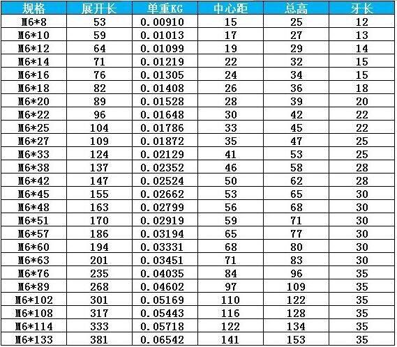 Технические характеристики продукта: серия M6 (M6×8--M6&Раз; 108) спецификации все
