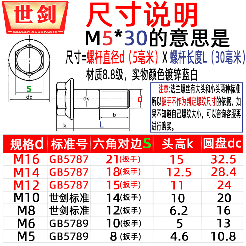 Мотоцикл болт Трех -лежащий магазин мотоцикл мотоцикл -болт -винт -галванизированный 8,8 снаружи гексагональной фланцевой лапши 6