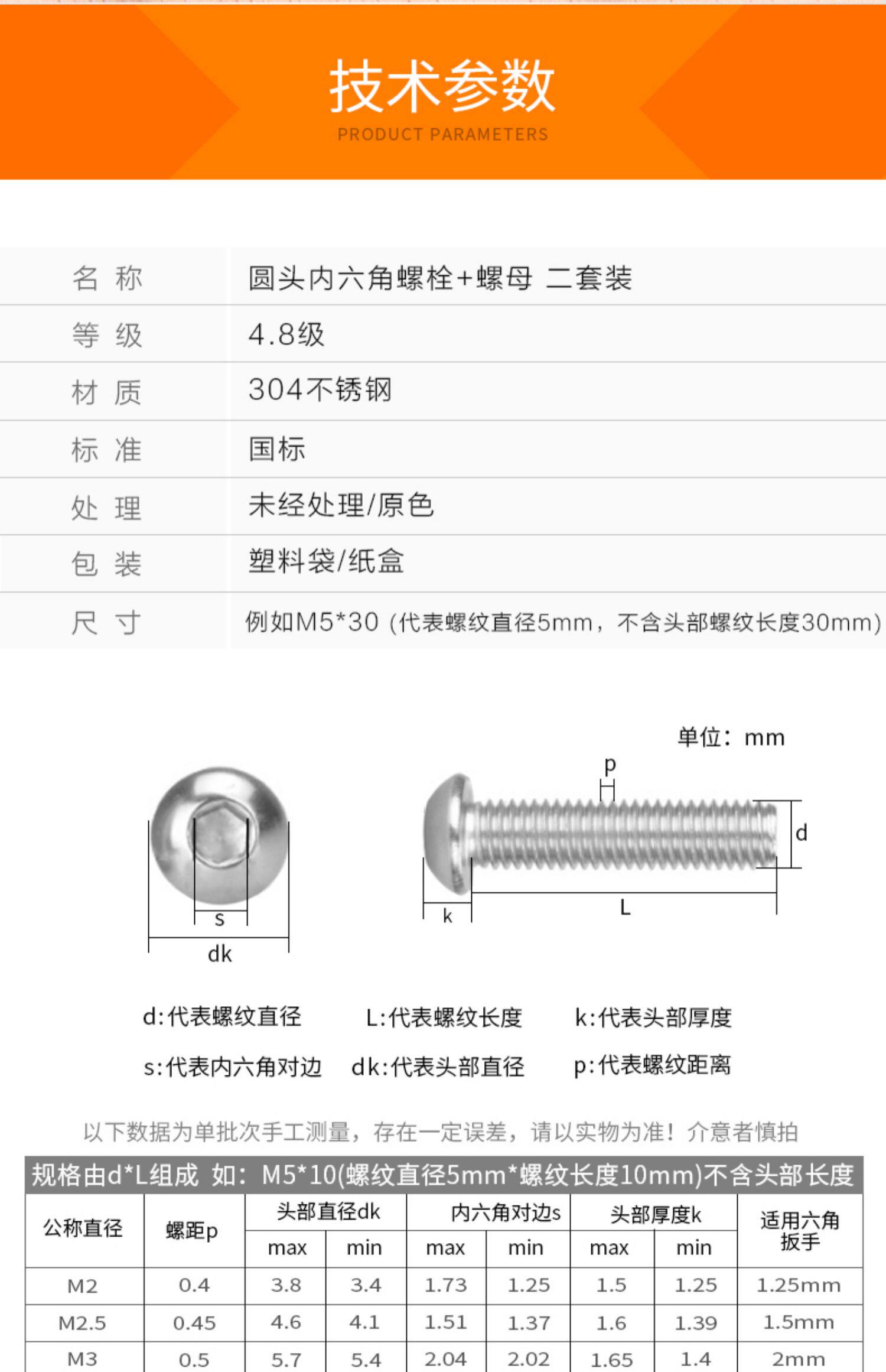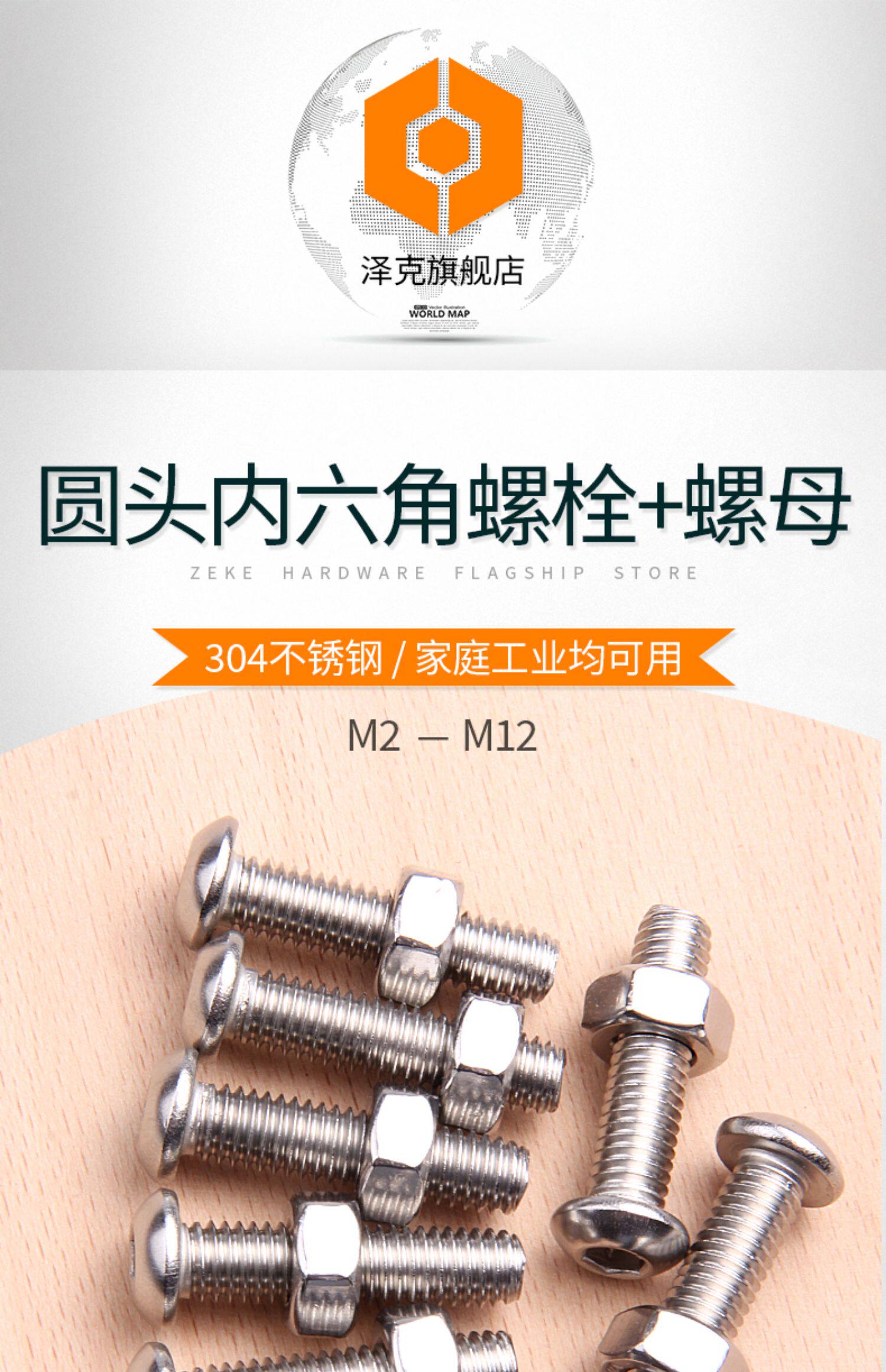 304 Круглая головка из нержавеющей стали Внутренняя шестиугольная винтовая гайка набор Daquan Comminte Head Bolt M3M4M5M6