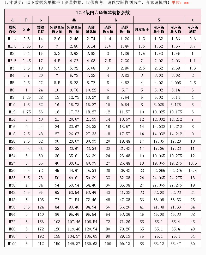 Степень 12.9 Внутренний шестиугольный винтовой коробка винта M8*12/16/20/25/30/35/40/50/60/70