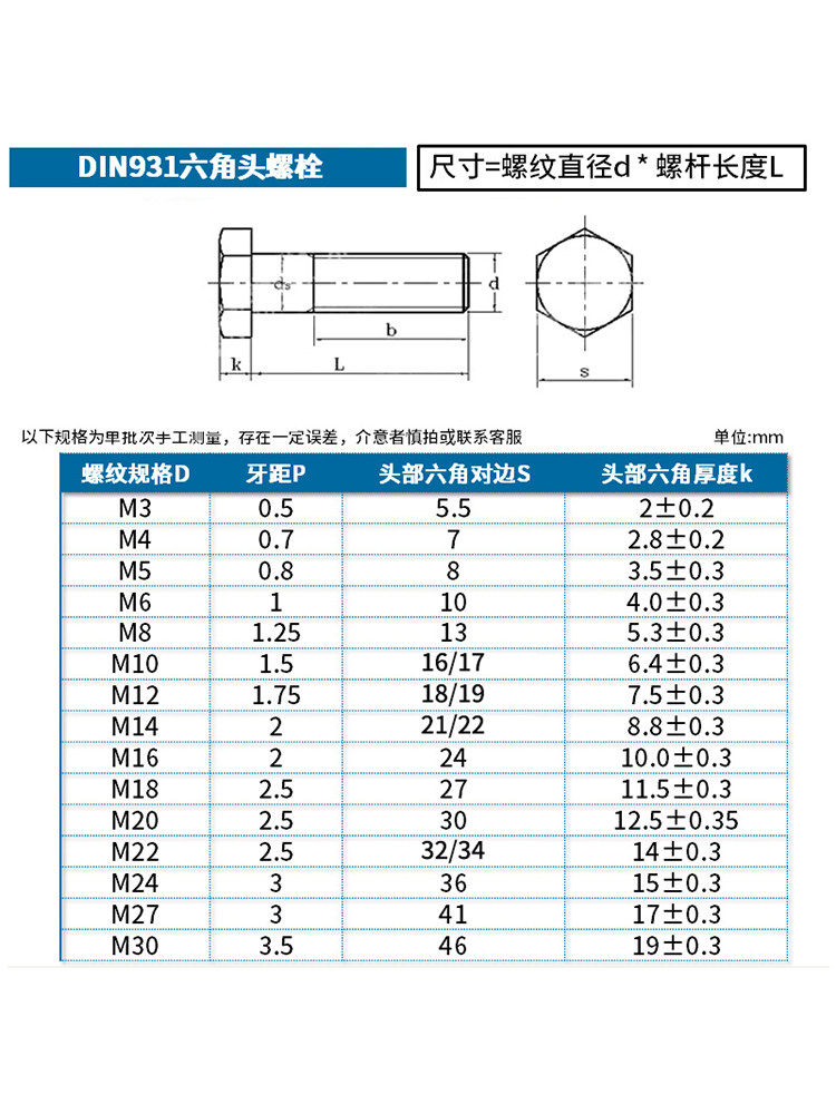 Винт с полурезьбой и шестигранной головкой, высокопрочный полупроволочный удлинитель класса 12,9 M8M10M12M16M20M24