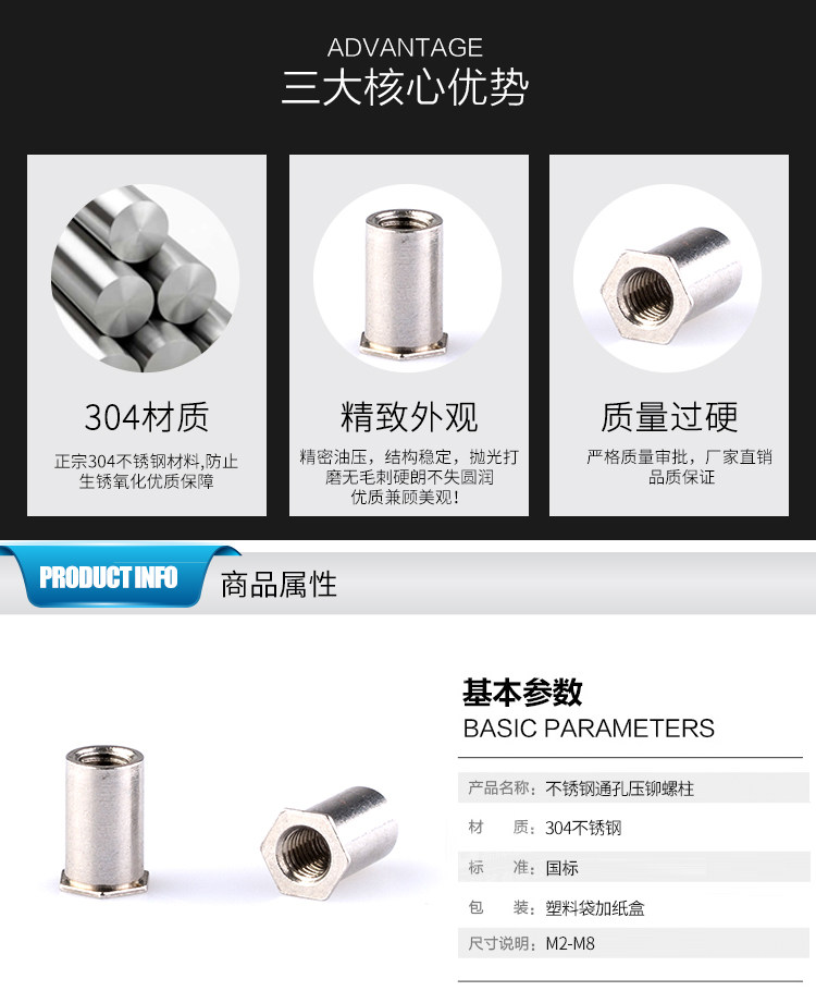 M4 304 Давление на полюсе из нержавеющей стали. Заклепывающее гвоздь/давление на шаг