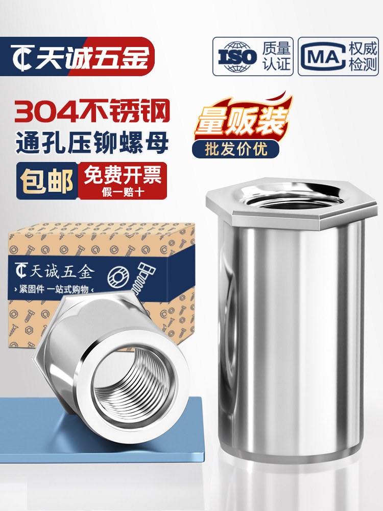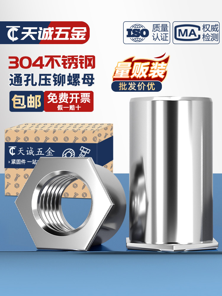 Нержавеющая сталь 304, сквозное отверстие, клепальный болт под давлением Sos, клепальная гайка под давлением, колонна, клепка под давлением, внешний диаметр M2M2.5M3M4M5M6