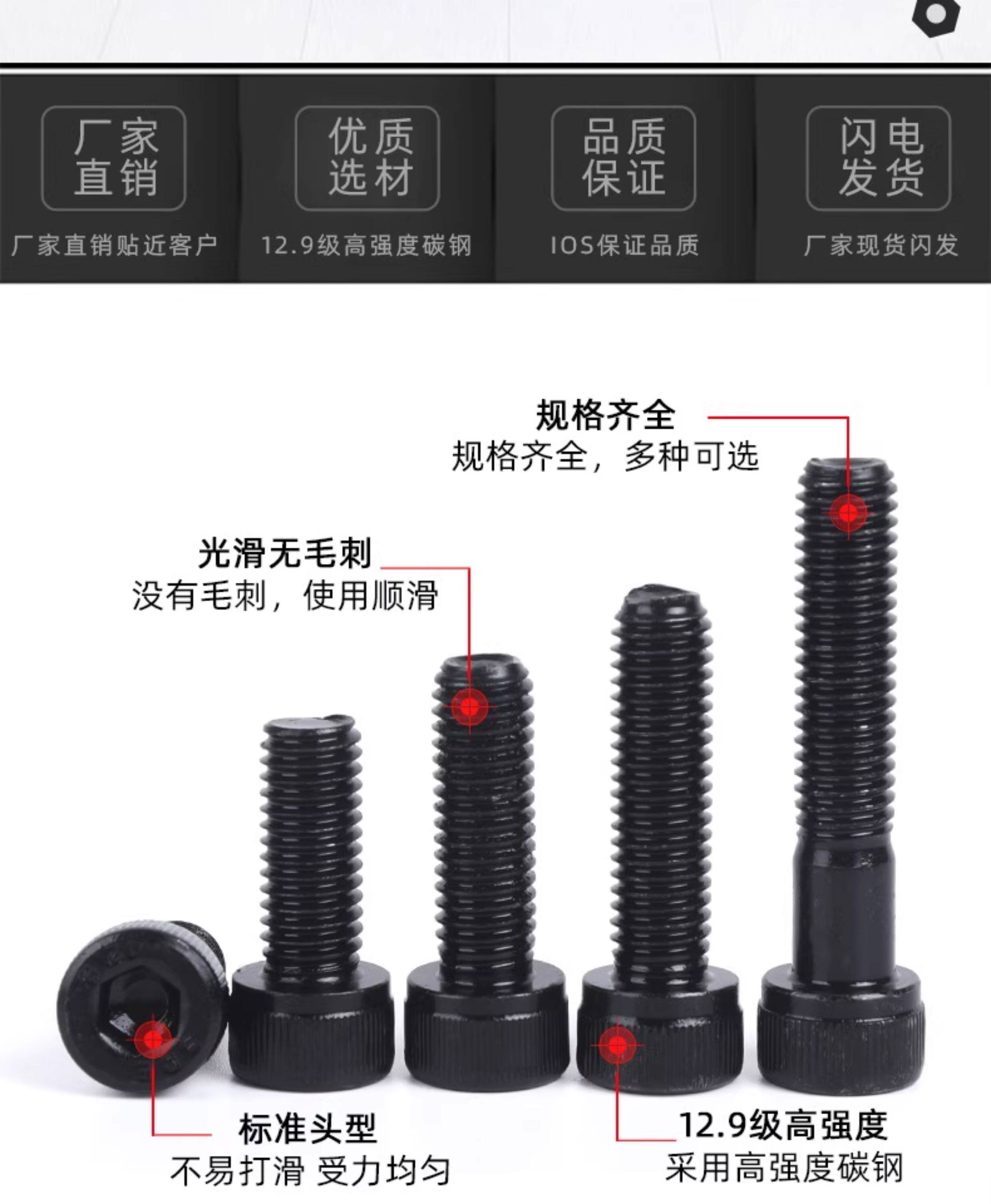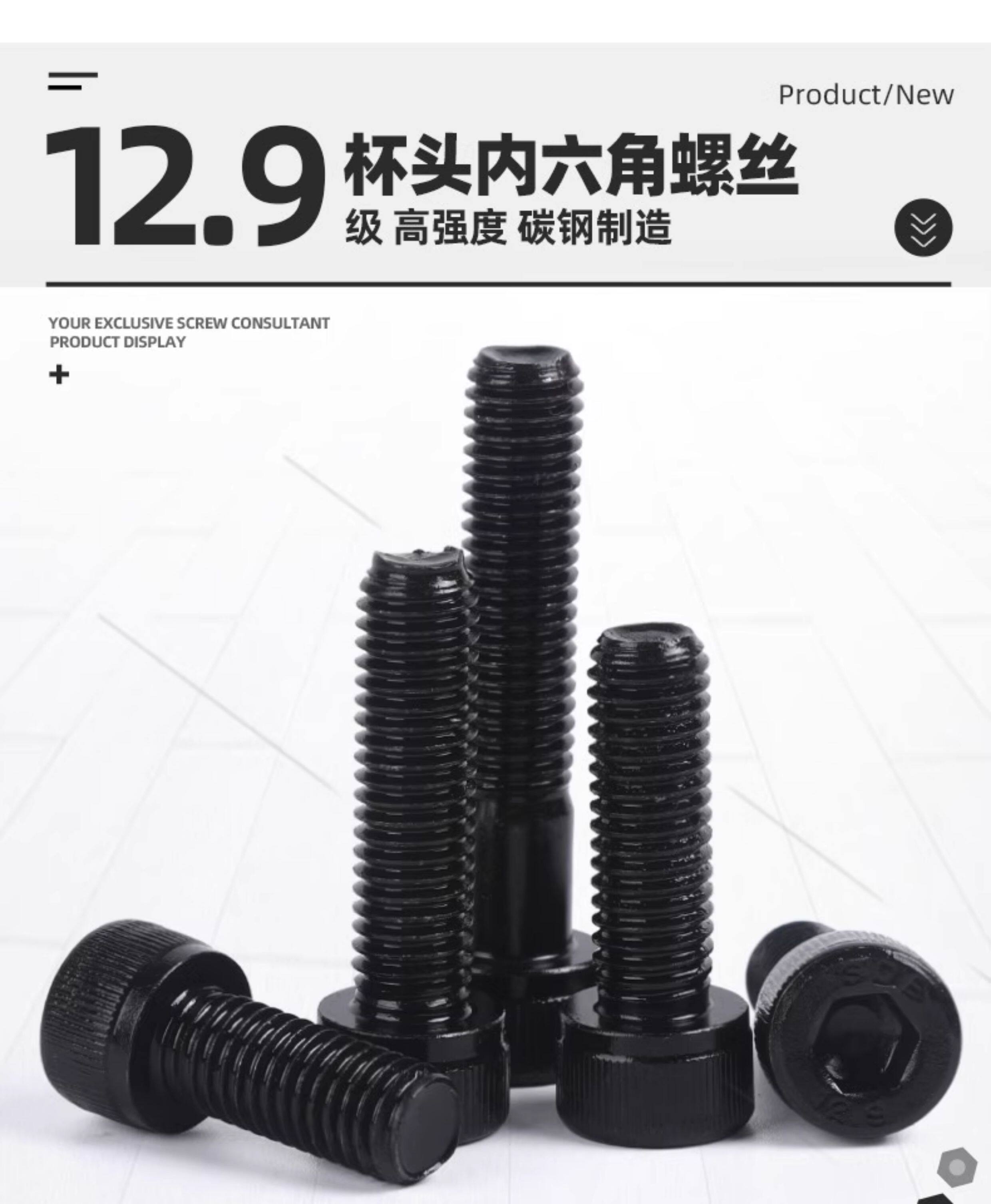 12,9 класса высокая чашка с высокой половой головкой Внутренний шестиугольный винтовой болт M1.4m1.6m2m3m4m5m6m8m10