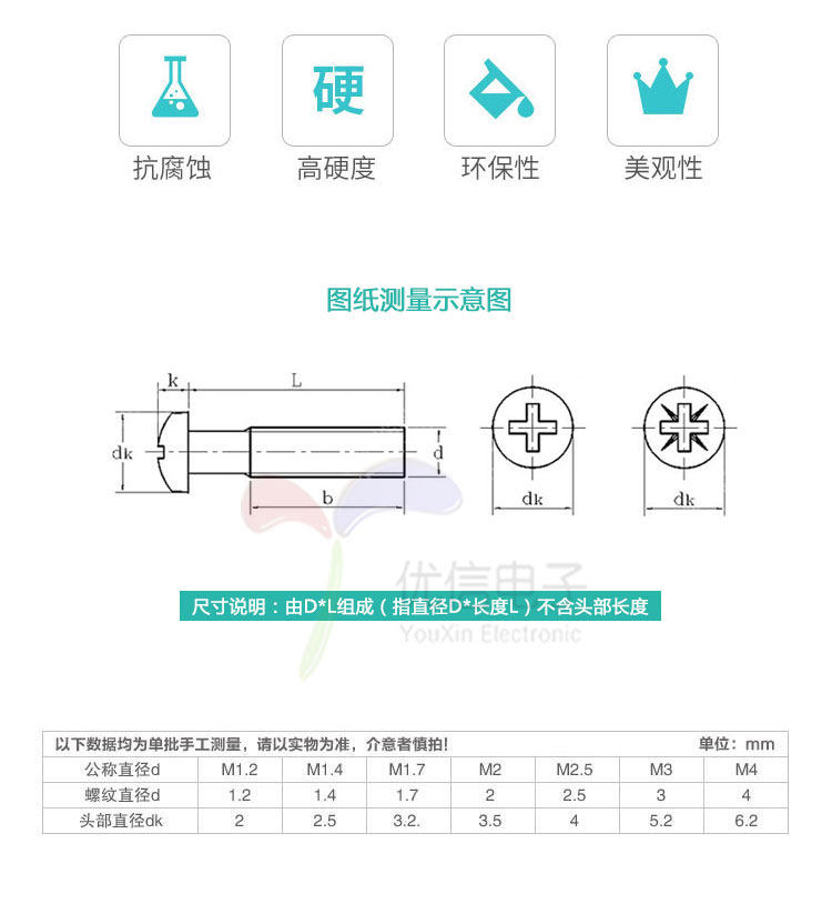 PM3*5/6/8/10/12/16/20/25/30 мм M3 Круглая головка скрещивания 100