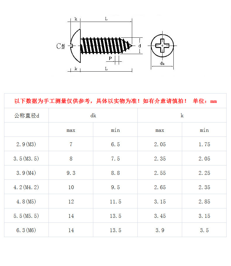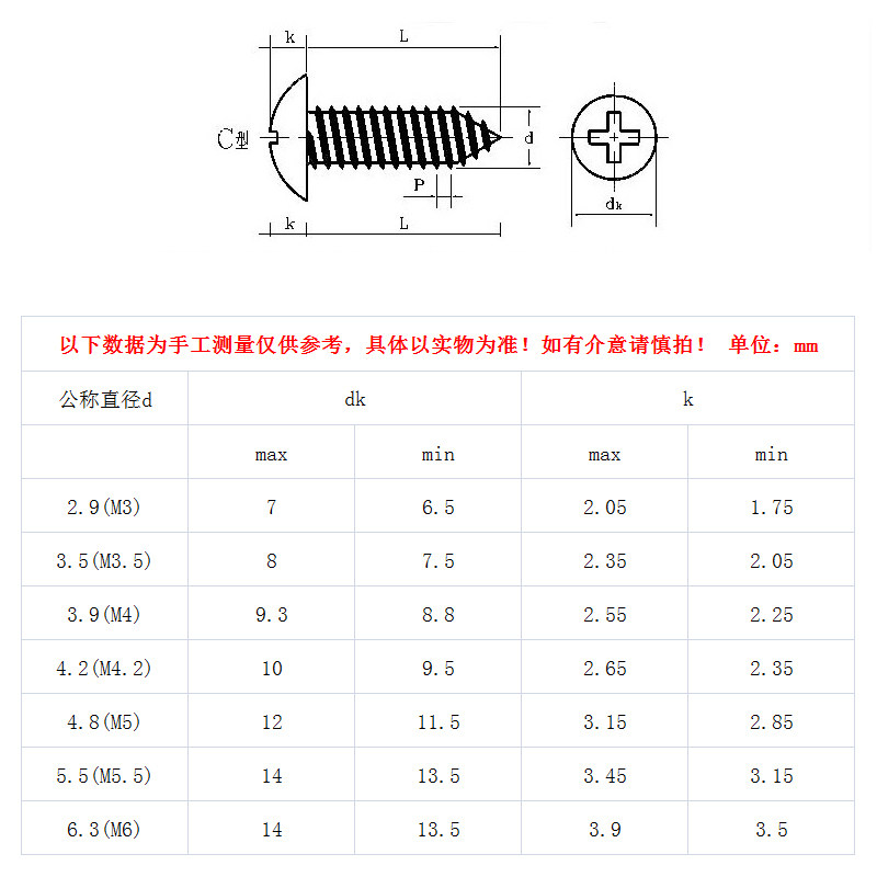 [M2.9m3.5 ~ M4.8m6.3] 316 Крест -поля с из нержавеющей стали -бры