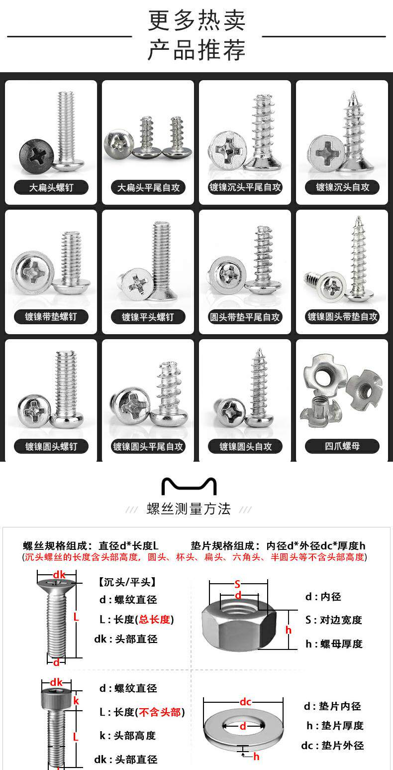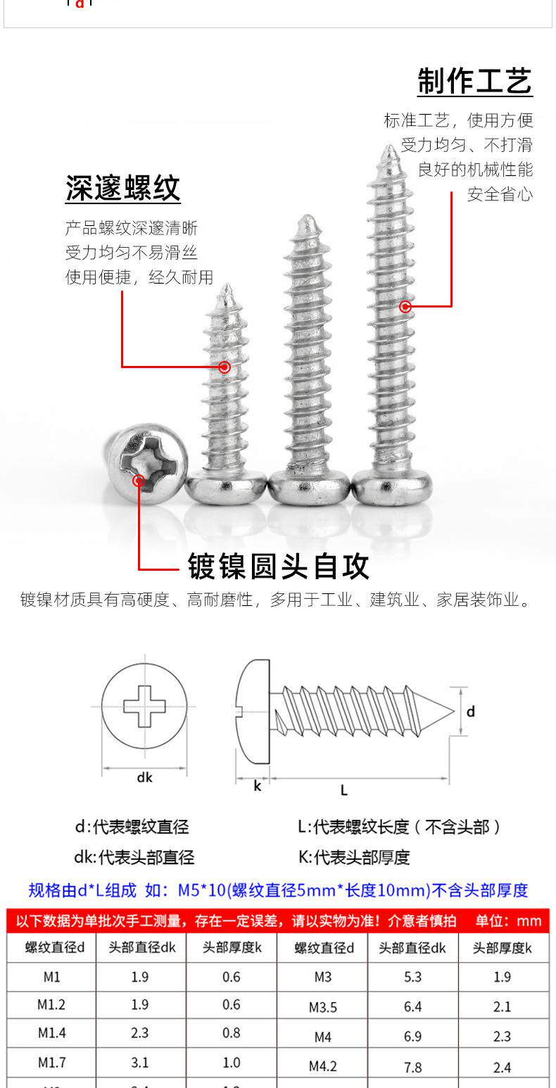 Cross -Headed Head -To -Head Self -Attack Vint Cround Head Zigong Nickel -Planted Electronic Gong Nail M2,3M2,6M3M4*8/10/16