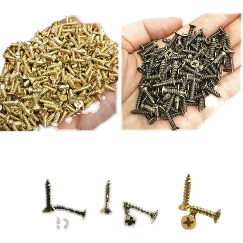 100 саморезов, миниатюрные крестообразные железные шурупы с плоской головкой, золотые многоразмерные деревообрабатывающие аксессуары, мебельные аксессуары
