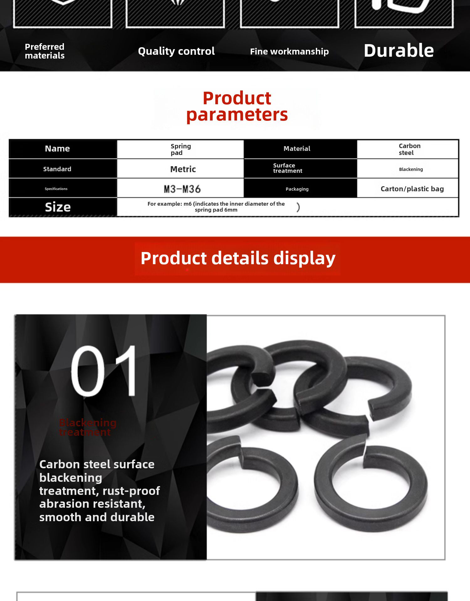 Пружинная шайба черная Класс 8.8 Пружинная шайба открытая шайба черная M2M3M4M5M6M8M10M12-30