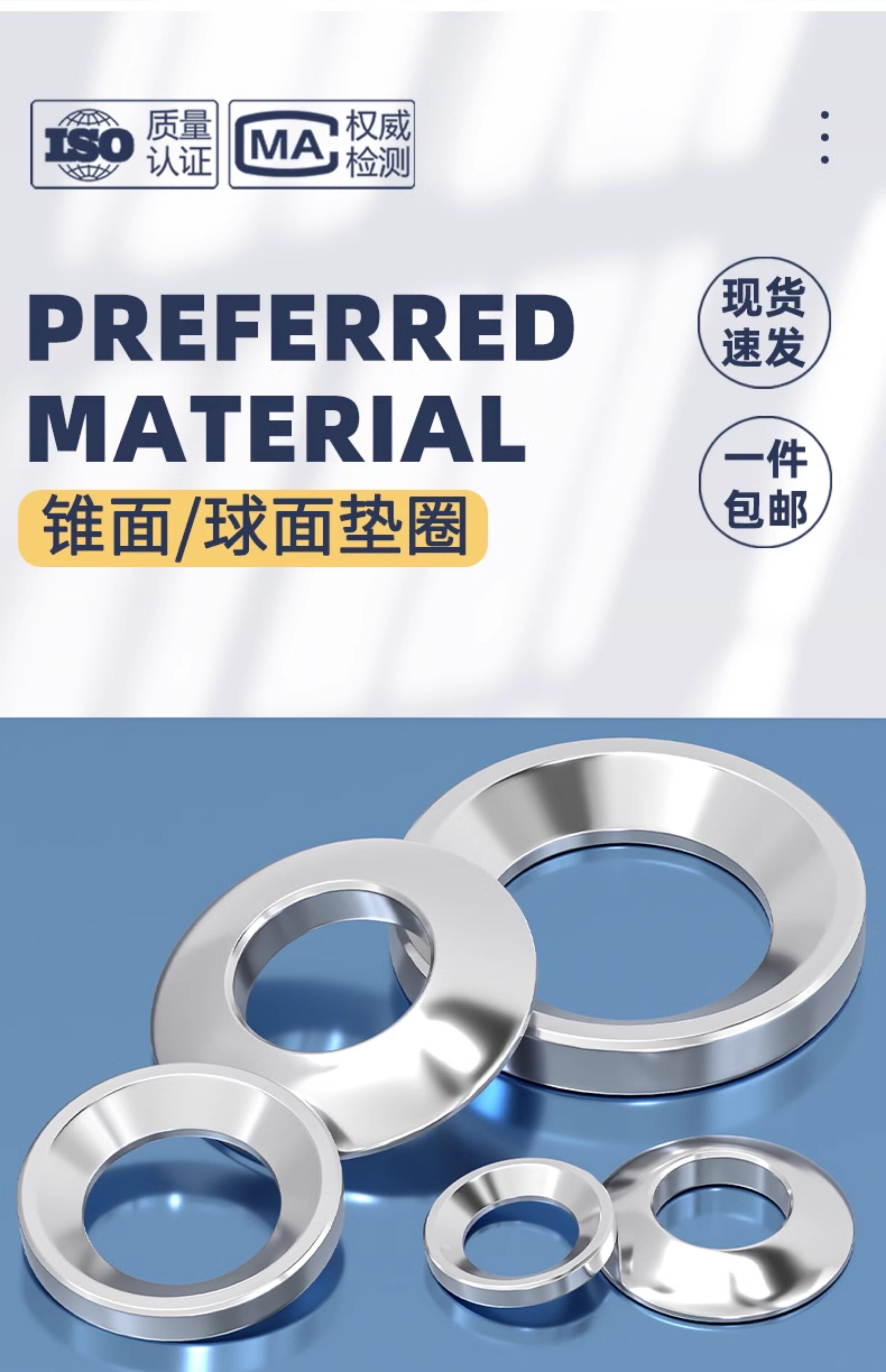 304 Поверхностная площадка конуса из нержавеющей стали GB850/GB849 Сферические прокладки/вогнутая поверхность -поверхностная площадка M6M8M10M12