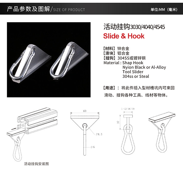 Алюминиевый профиль алюминиевый крюк Нейлон Пластиковый крюк