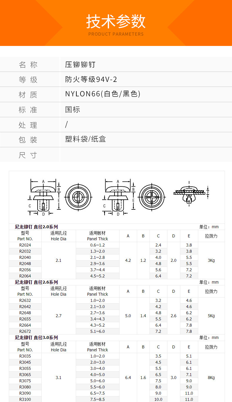 Нейлоновые заклепки нажимающие пластиковые заклепы