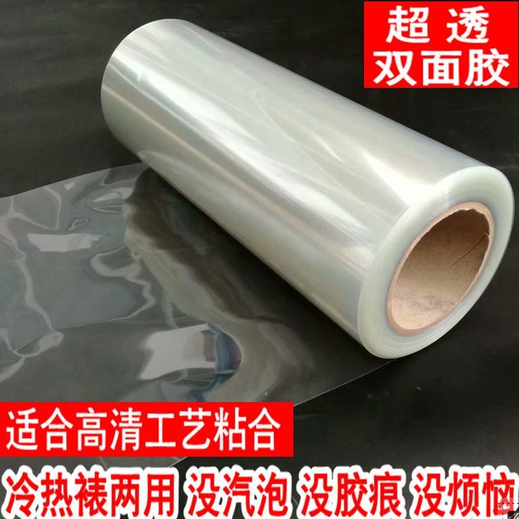Характеристики продукта: двойной клей использует вышеупомянутую прозрачную мембрану ПЭТ, прозрачную мембрану ПЭТ внизу, а средний сэндвич -питомец очень прозрачный клей.