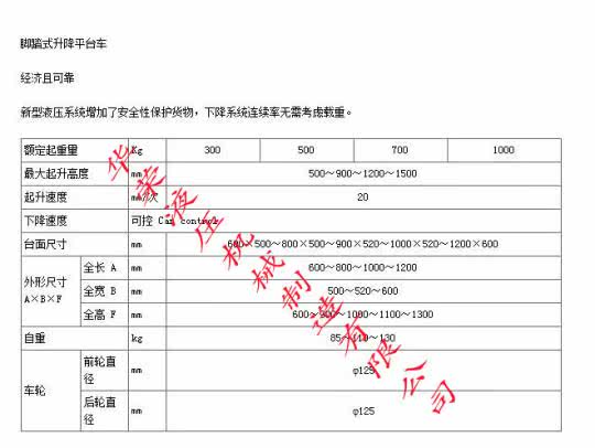 Технические параметры ручной гидравлической платформы: