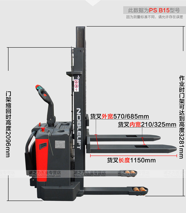 Nuo Liquan Electric Heap High -Car Forklift Гидравлический лоток Укладывание автомобиля PSB1.2 ТОННАЯ 2,9 М батарея батарея