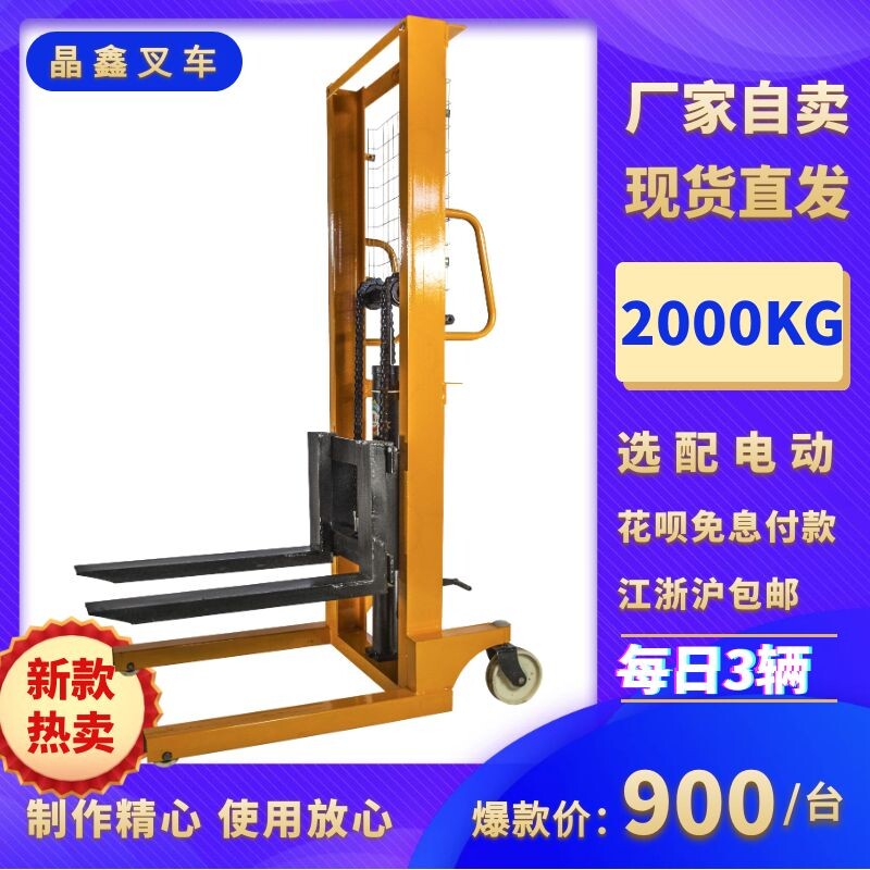 Ручной гидравлический стек с высоким уровнем ручного погрузчика увеличивает 2 тонны рук и ног, рук и ног, двухтонные ручные и ноги, два -сдача ручной напряжения, увеличение и разгрузка вилочного погрузчика
