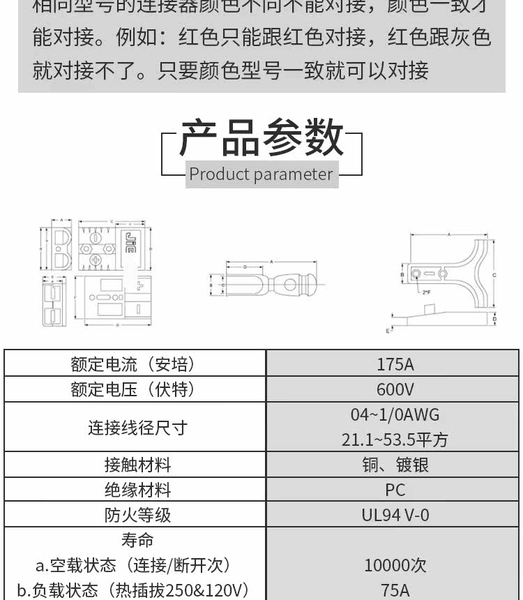 Оригинальная подключаемое подключение REMA -IN SR175A 600V Grey FORLIFT Зарядное зарядное зарядное зарядное зарядное устройство Большой ток разъем