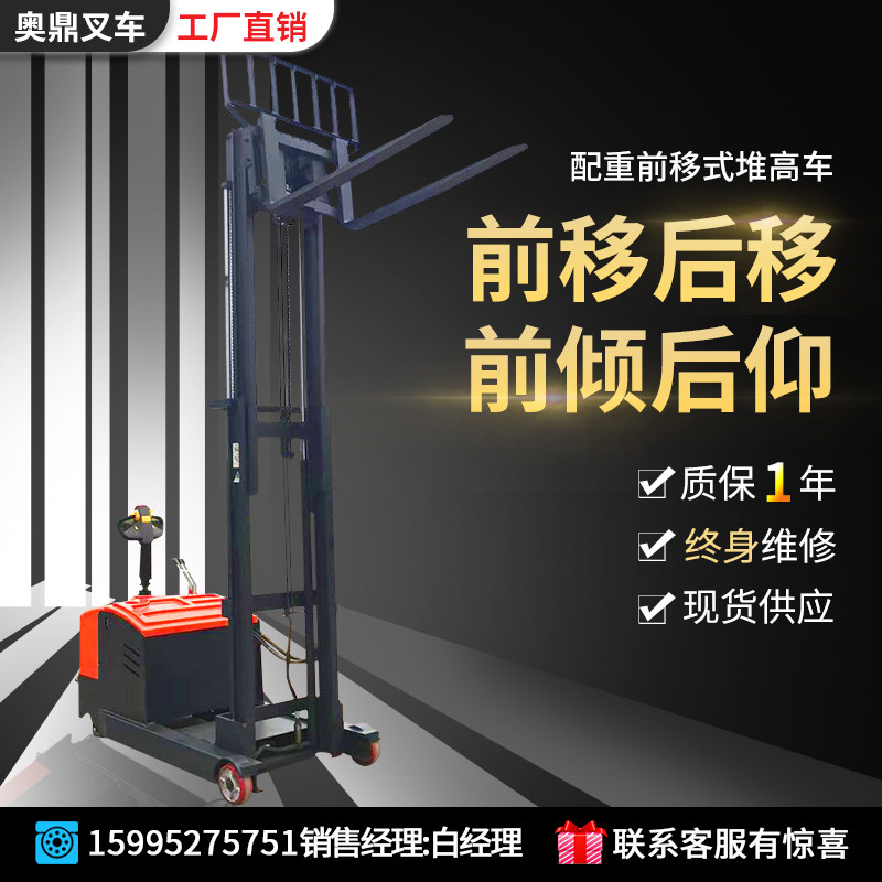 Тяжелая передняя передняя часть -полный электрический вилочный погрузчик без ног, балансируя гидравлическое давление с тяжелым аккумулятором, высокая стопка с высоким содержанием стека вилочного погрузчика