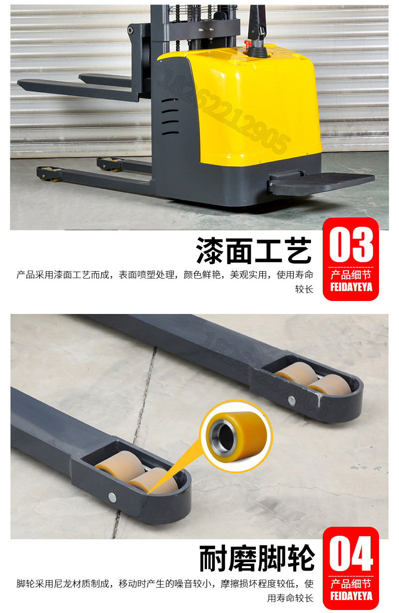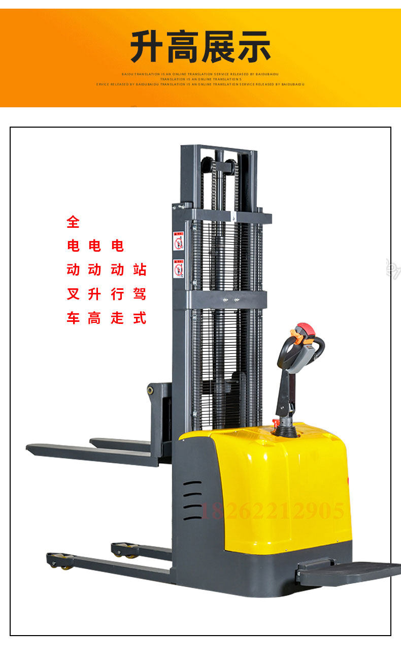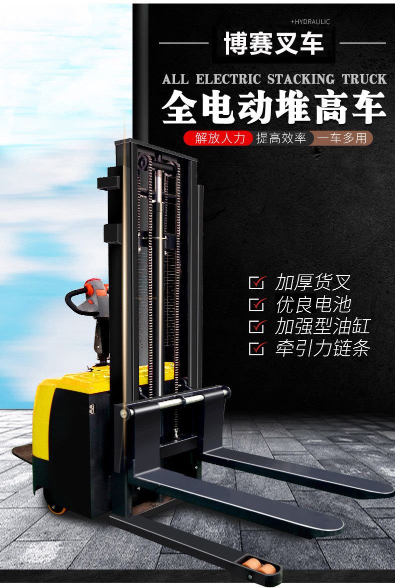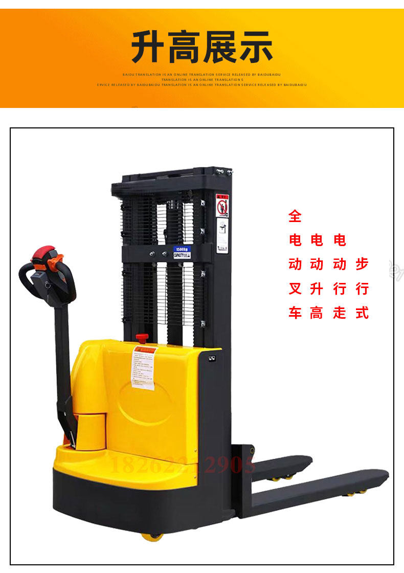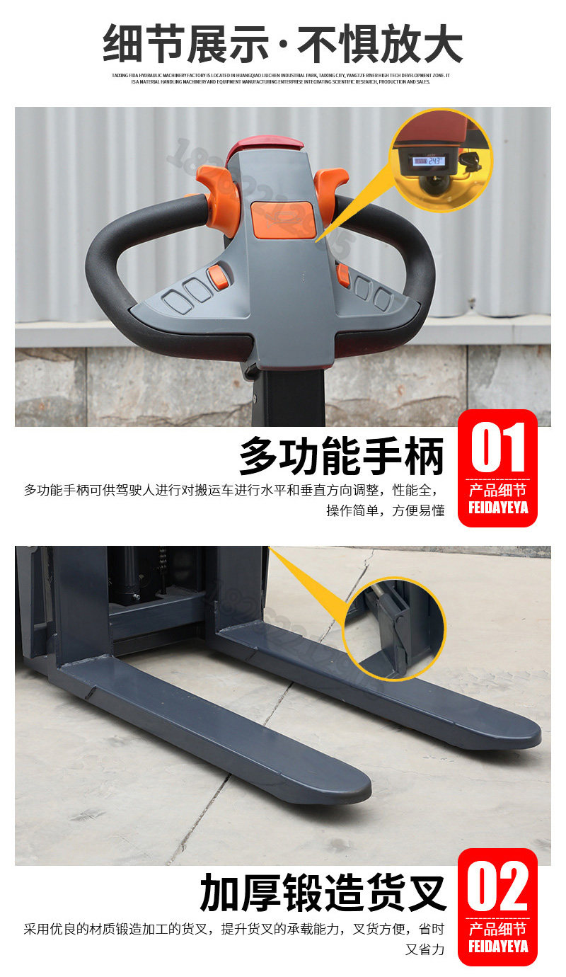 Полная электрическая вилочная погрузчика 1 тонна, 2 -я обработка аккумуляторов, повышенная, поднимающаяся, высокая каркатная гидравлическая нагрузка по защите окружающей среды, лопата, лопата