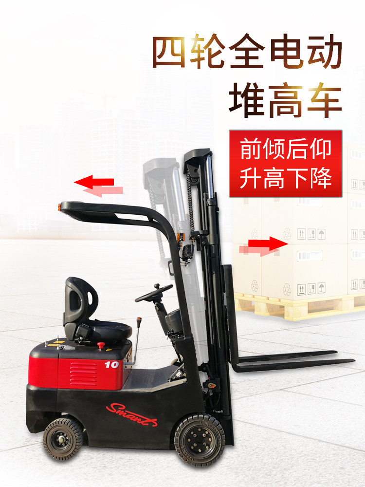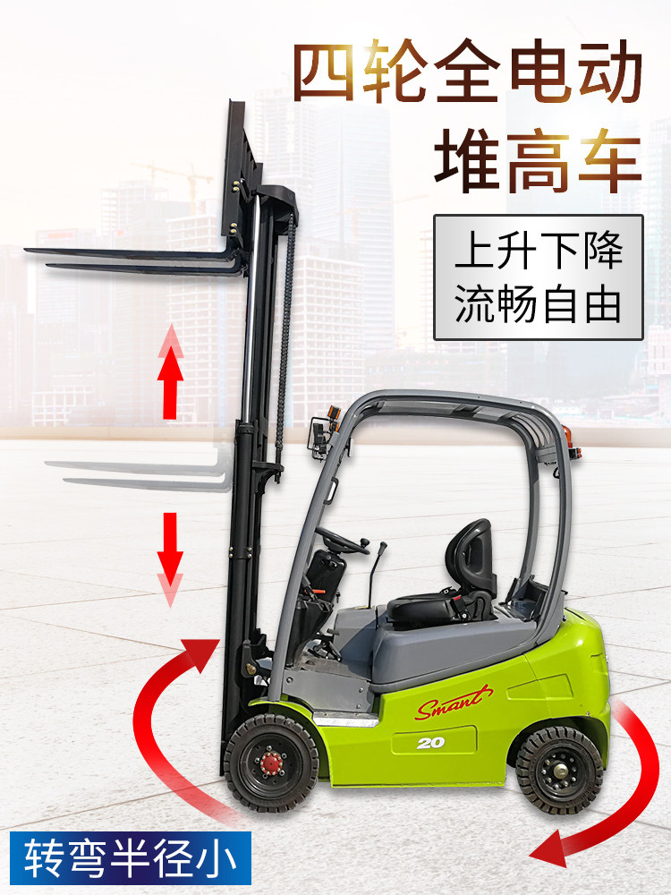 Экологический -дружеский четырехпроятный электрический вилочный погрузчик 1,5 тонны электрической кучи высокий баланс тяжелый вилочный погрузчик 2 тонны нагрузки батареи и вилочного погрузчика