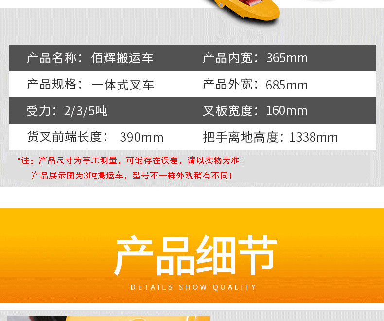 Baihui Forklift Manual Гидравлический перевозчик земля крупного рогатого скота 3 тонна 2 -тонной новой маленькой ручной толкать, подъемник и разгрузка трейлер