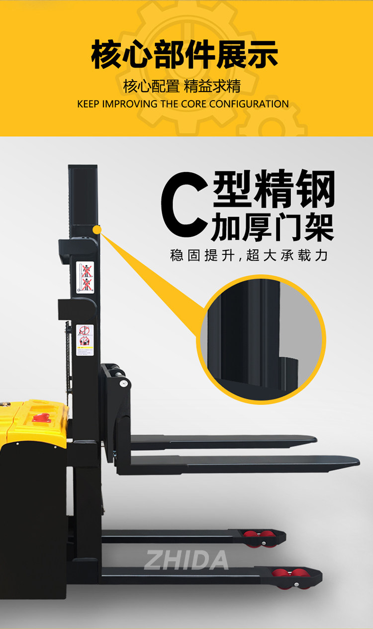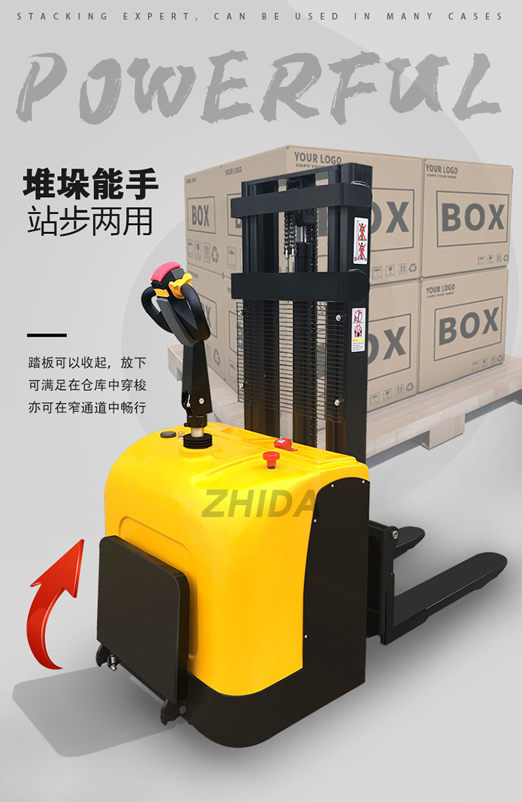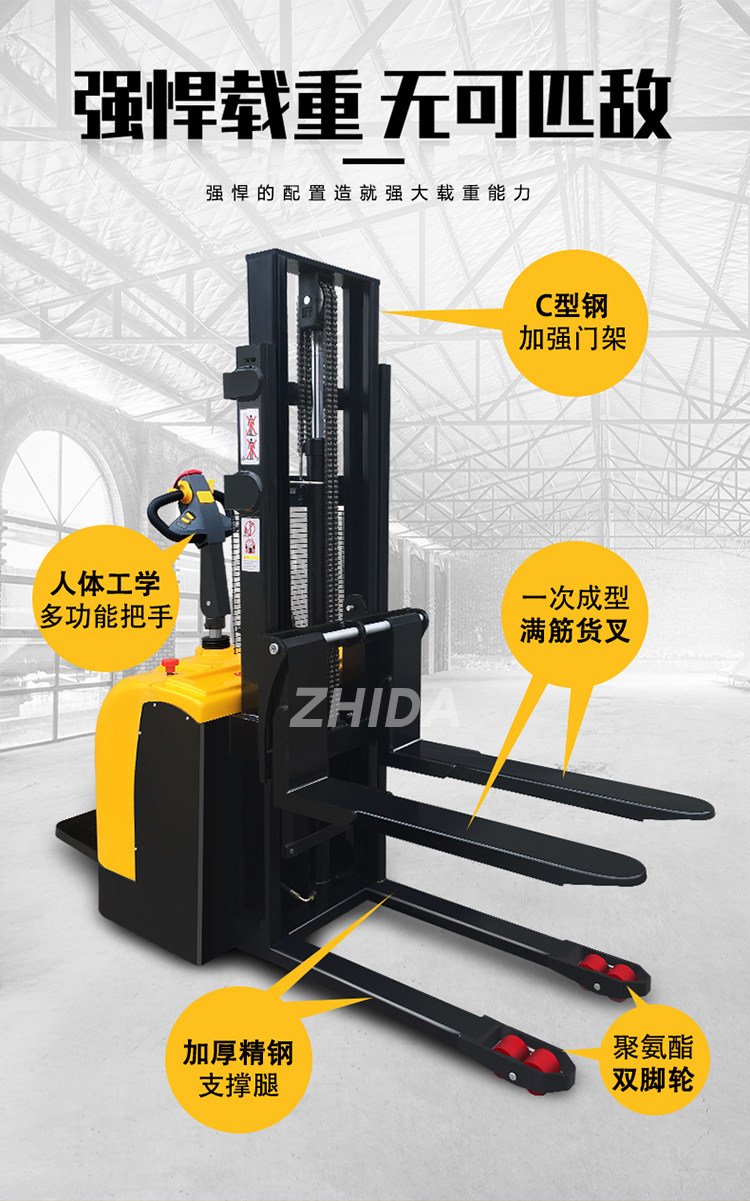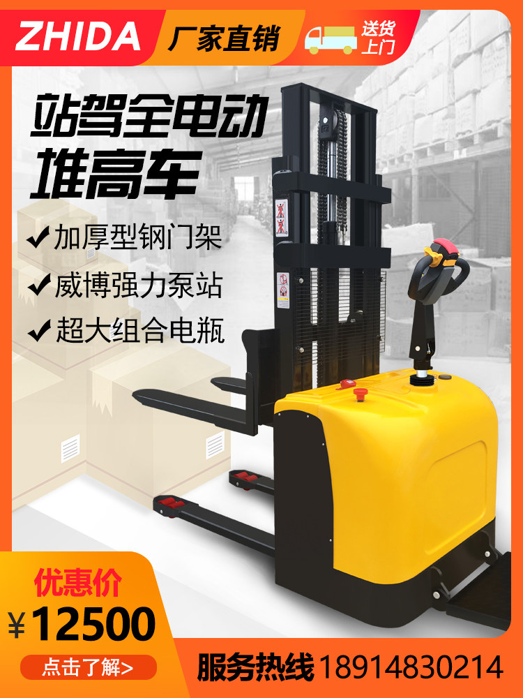Полная электрическая вилочная погрузчика 1. 5 тонн из 2 -тонической гидравлической батареи, сложенной с высокой аутоматической подъемной палочкой лопаты