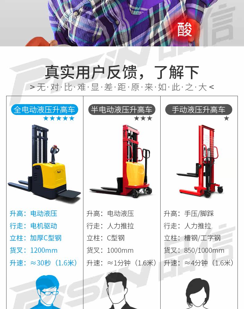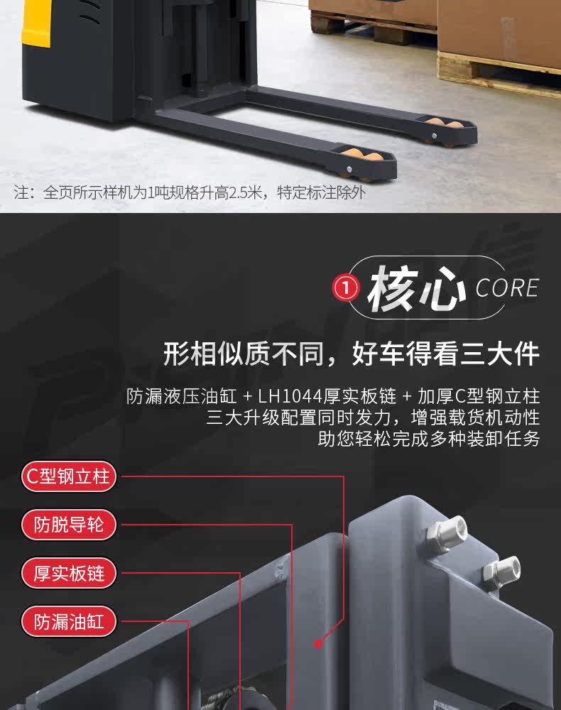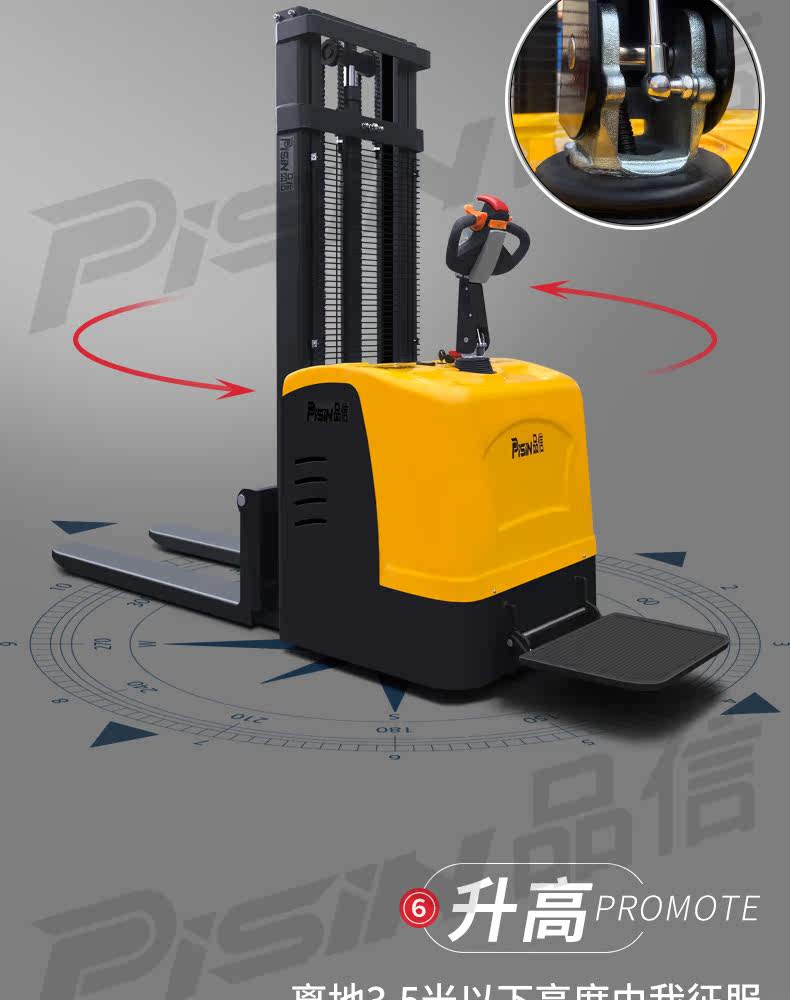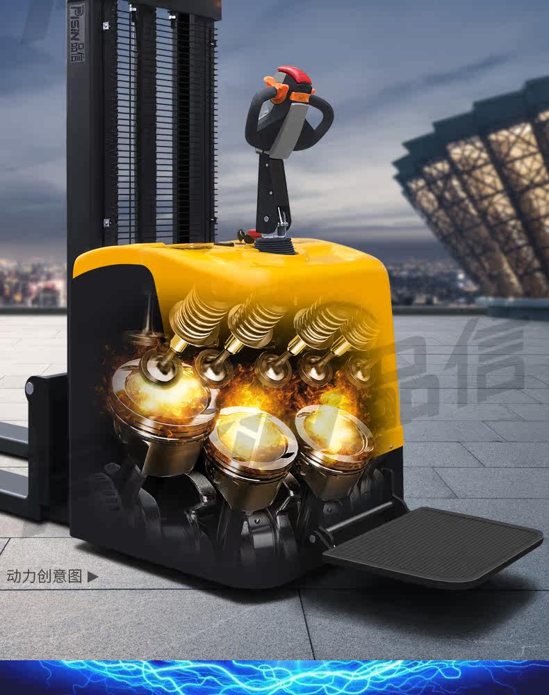 Форкзалик Полный электрический гидравлический стек Высокий станции, проезжая 2 тонны транспортных транспортных средств Повышенных автомобилей, подъемная локомотив Укладка и разгрузка вилочного погрузчика ...