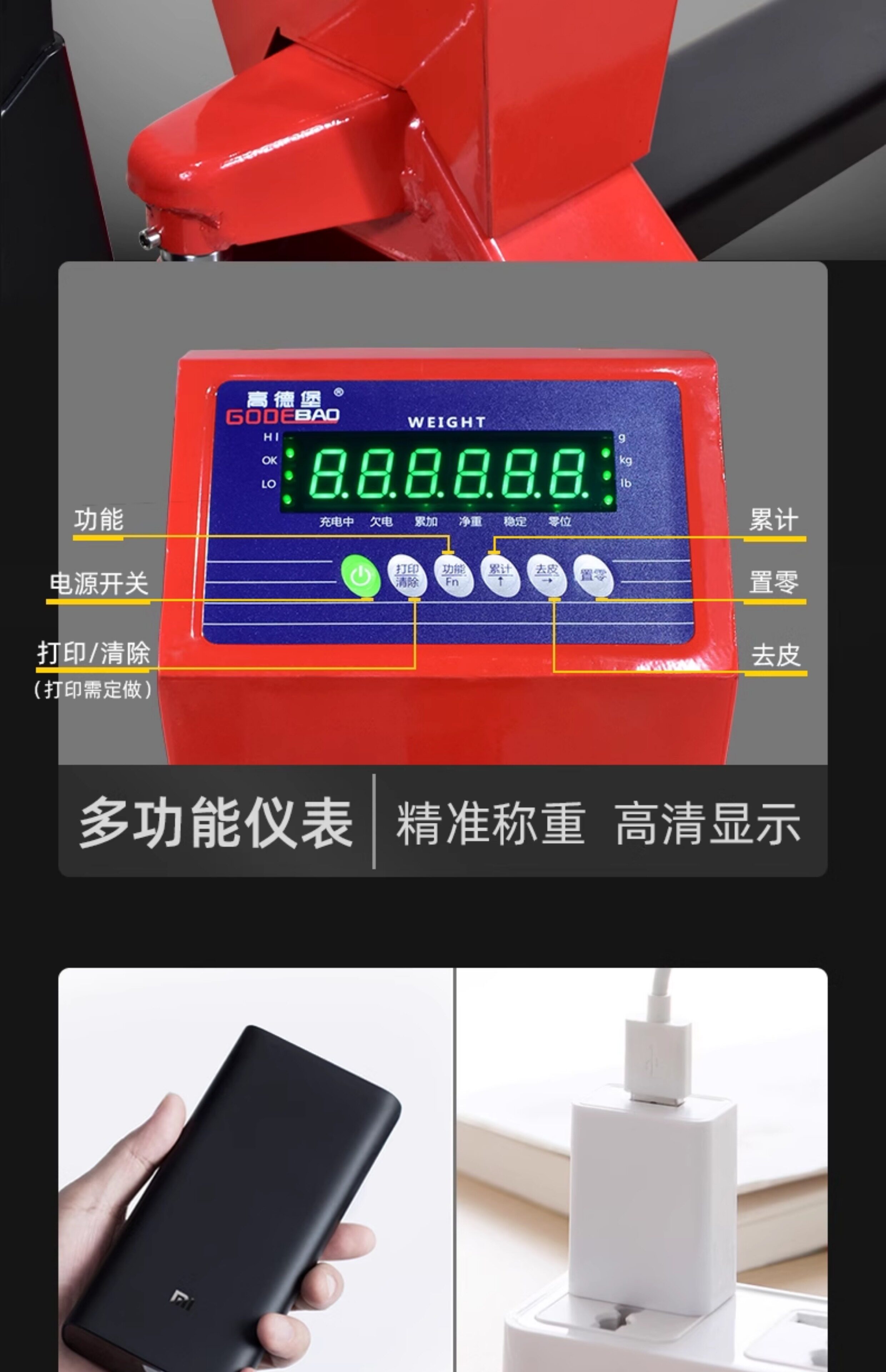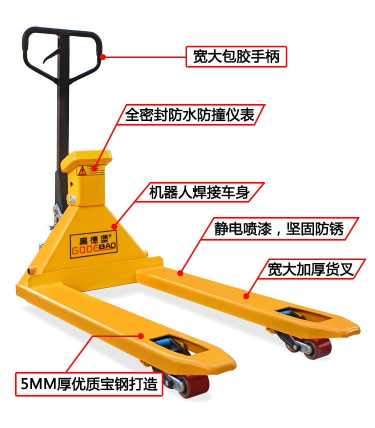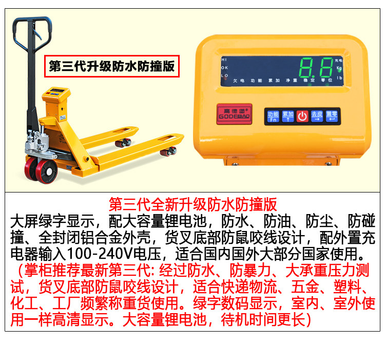 高德堡 Электронная шкала вилочного погрузчика Ручное транспортное грузовик заземление вол Точный водонепроницаемый электронный масштабная шкала логистики