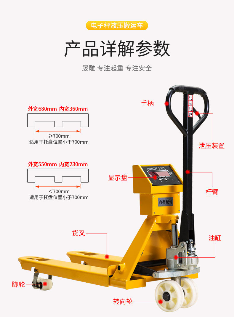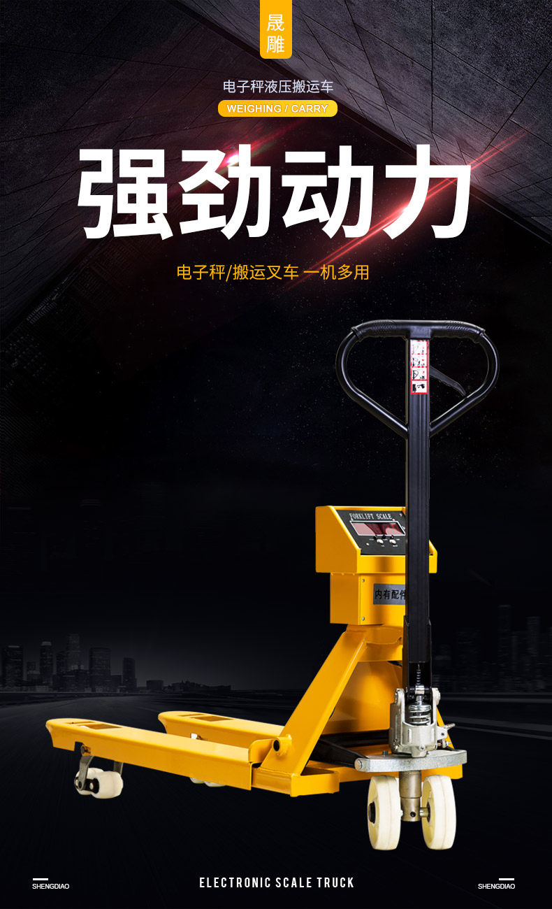 晟雕 Ручная гидравлическая вилочная погрузчика с электронами, называемая шкалой 2 тонны 2 -я 3T 3T Тяжелый движущийся автомобильный лоток для бычьего подноса