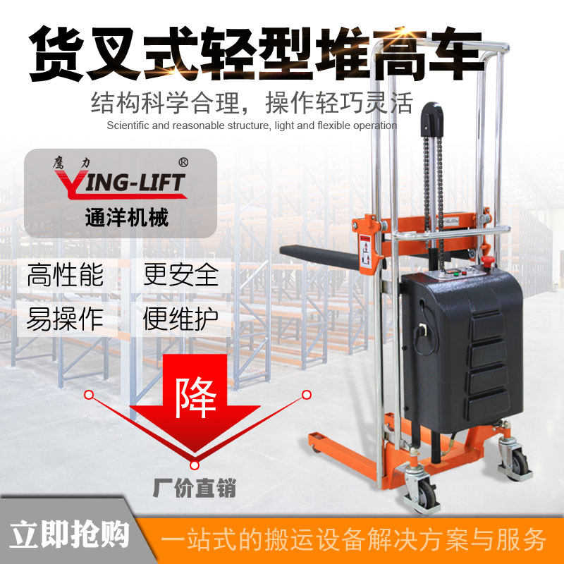Форк -тип светового типа с высоким уровнем малого вилочного погрузчика Руководство по электрическому гидравлическому подъему, низким, нагрузкам, нагрузке и повышенной силе орла