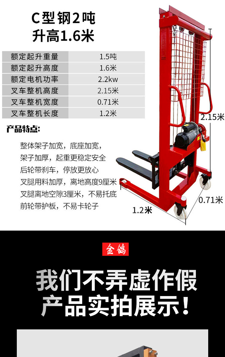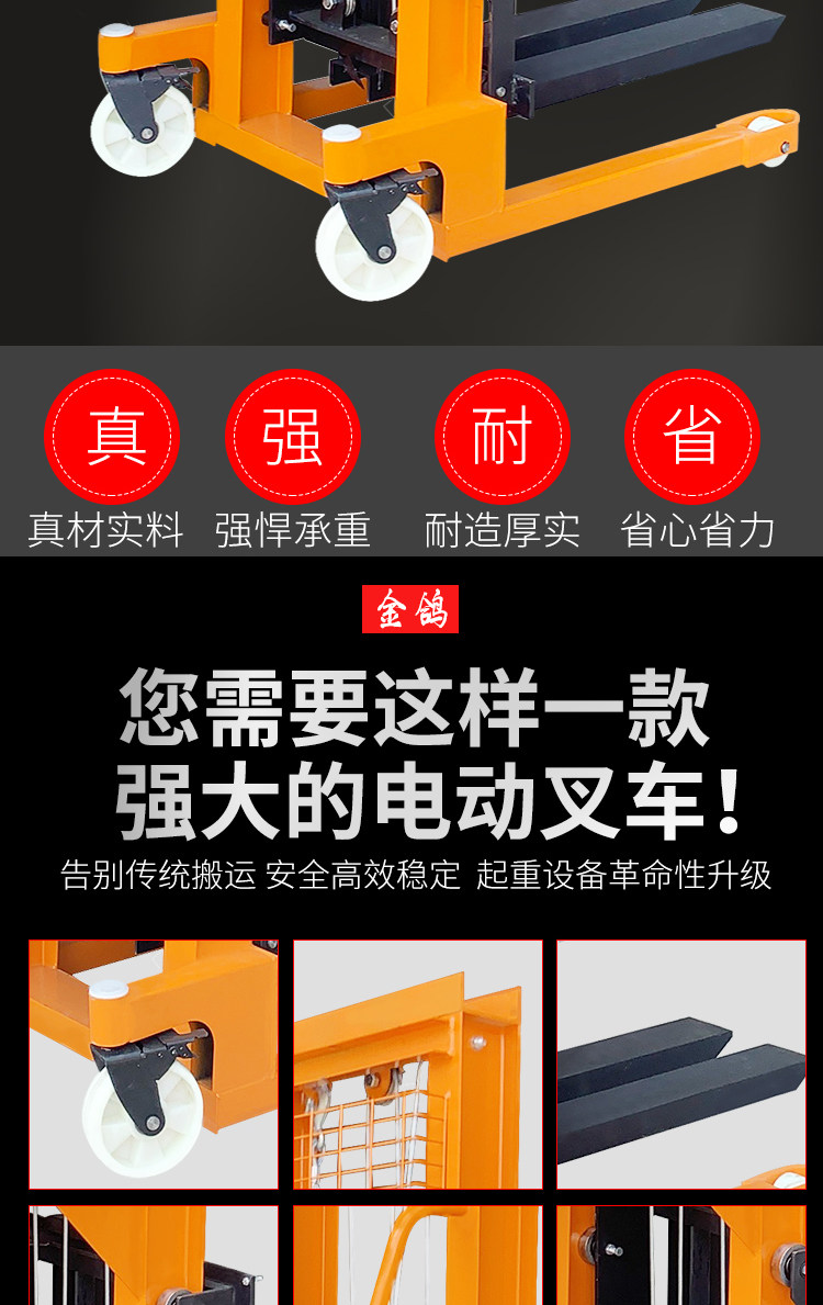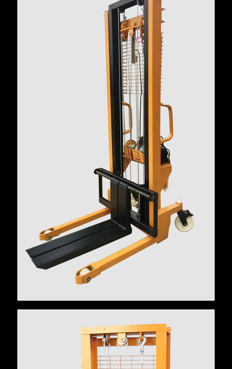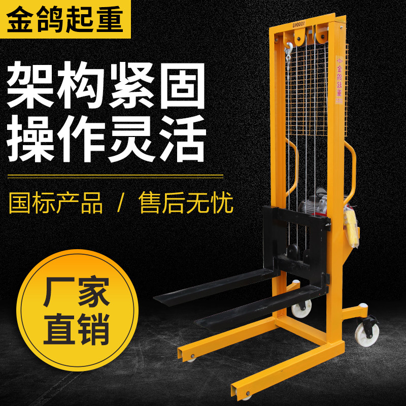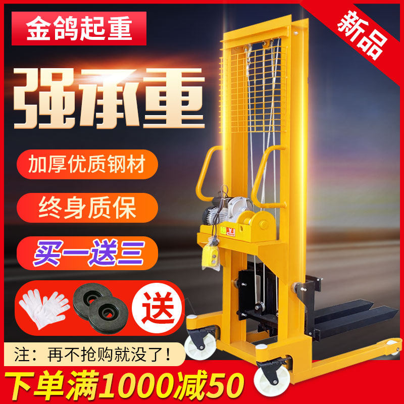 Электрический вилочный погрузчик 1 тонна, 2 -ттун -высокая гидравлическая ручная ручная заземляющая бычья транспортное средство.