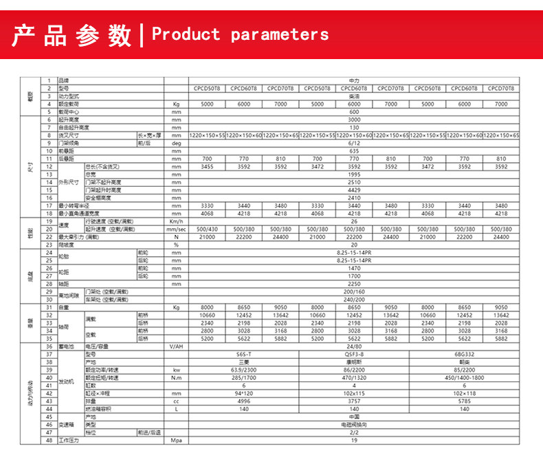 5,0-7,0 тонна серии серии T8 Внутреннее сжигание вилочного погрузчика