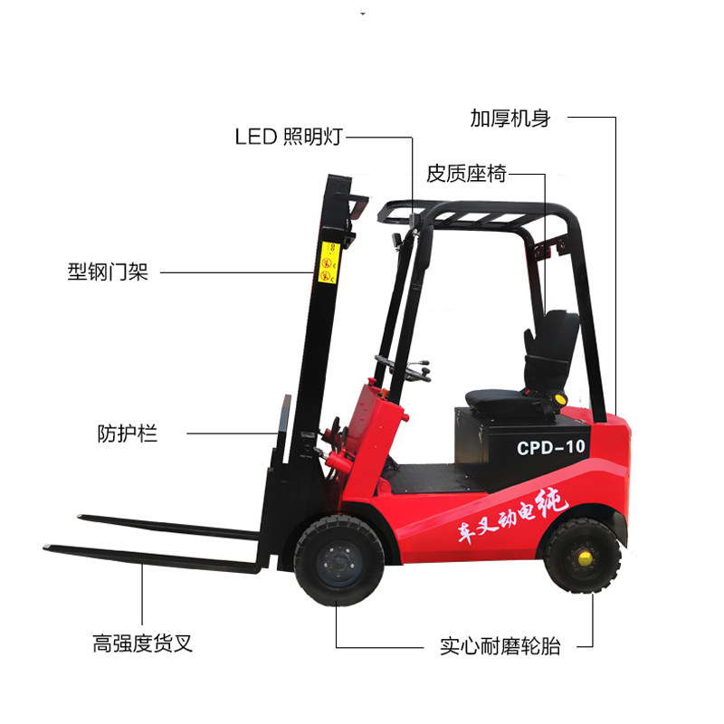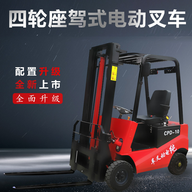 Четырехколесный электрический вилочный погрузчик 1 тонна, 2 -цветный небольшой автоматический гидравлический транспортный автомобиль поднимать высокую загрузку и разгрузку электрического вилочного погрузчика