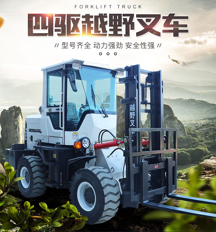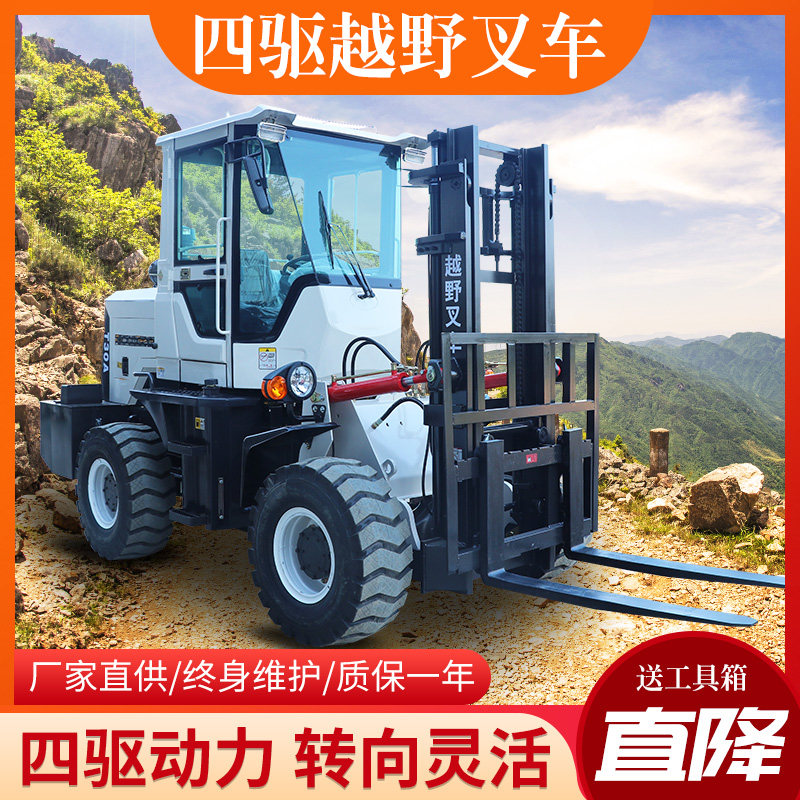 Выкл -дорожный вилочный погрузчик с четырьмя -шлюзовиками интегрирован 3 -тон 5 гидравлический автомобиль с четырехпроизводительной лопатой.