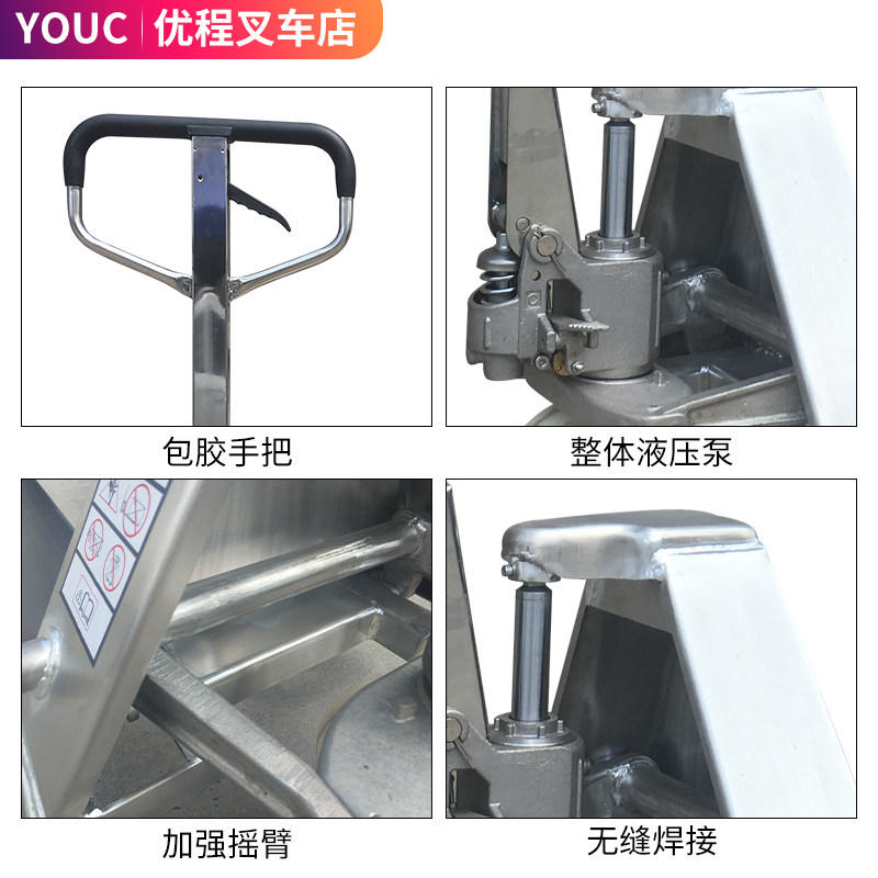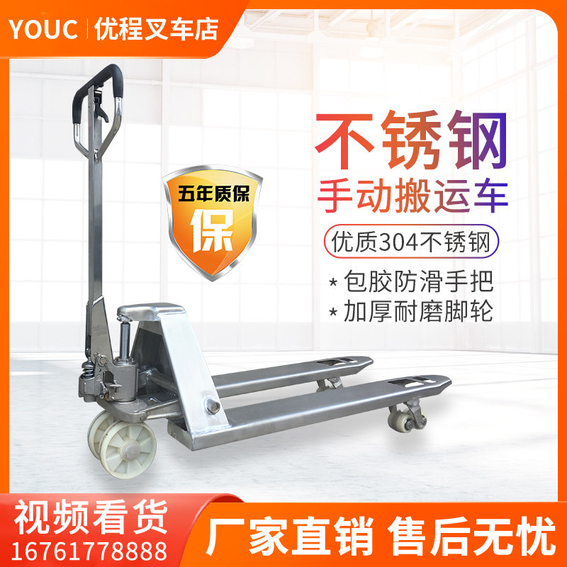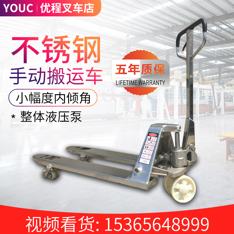 Ручной гидравлический лоток ручка водителя тянет 2,5 тонны 304 из нержавеющей стали заземляющего вилочного погрузчика.